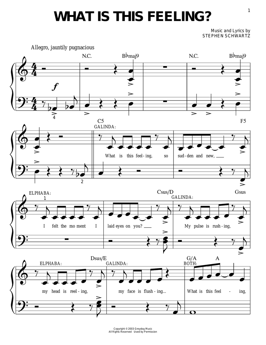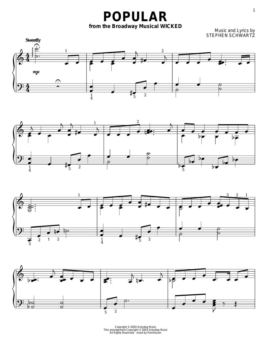 By Stephen Schwartz and Wicked (Musical). For piano. Broadway; Musical/Show. Big-Note. Big Note. 6 pages. Published by Hal Leonard - Digital Sheet Music