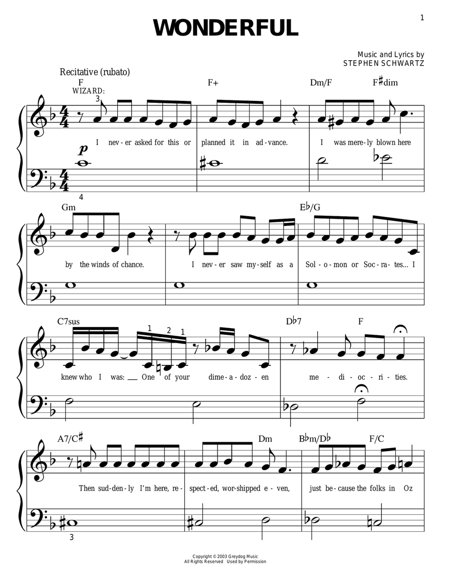 By Stephen Schwartz and Wicked (Musical). For piano. Broadway; Musical/Show. Big-Note. Big Note. 7 pages. Published by Hal Leonard - Digital Sheet Music