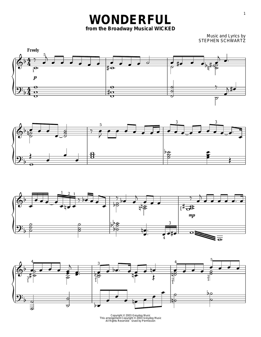 By Stephen Schwartz and Wicked (Musical). For piano. Broadway; Musical/Show. Piano. 4 pages. Published by Hal Leonard - Digital Sheet Music