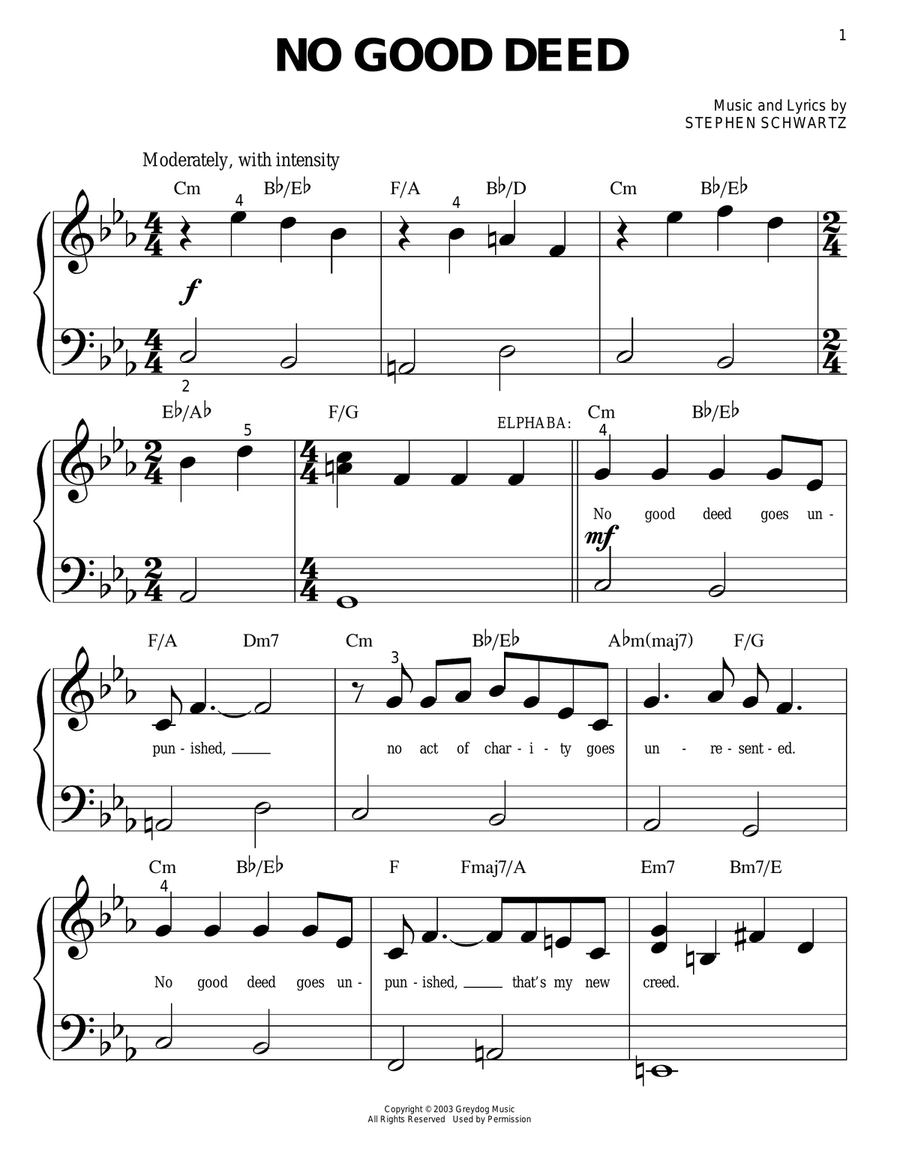 By Stephen Schwartz and Wicked (Musical). Broadway; Musical/Show. PNOCHD. 3 pages. Published by Hal Leonard - Digital Sheet Music