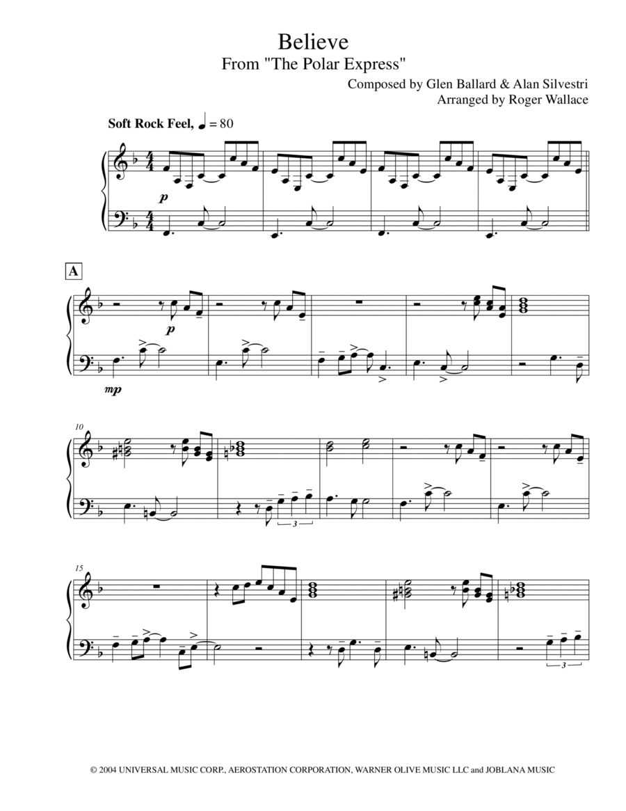Téléchargez la partition Piano Le Pôle Express - Believe (niveau intermédiaire, piano solo…