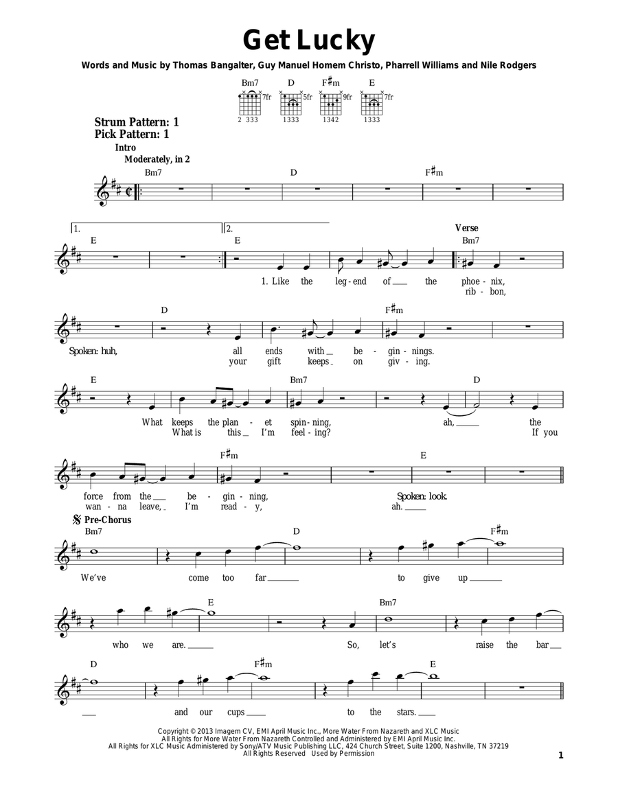 Solo Guitar - Level 1 - Digital Download SKU: A0.992970 By Sam Smith. By James Napier and Sam Smith. Arranged by NYC Guitar School. Pop,R & B. Individual part. 2 pages. NYC Guitar School #3590125. Published by NYC Guitar School (A0.992970). This awesome 5 chord song can be played with just C, E, Am, F and G. If you take NYC Guitar School's Guitar For Near Beginners class, you'll know everything you need to play Get Lucky. For free tutorials visit www.guitarlessons.nyc, and to take online classes, video chat lessons or classes in person in NYC visit www.nycguitarschool.com.