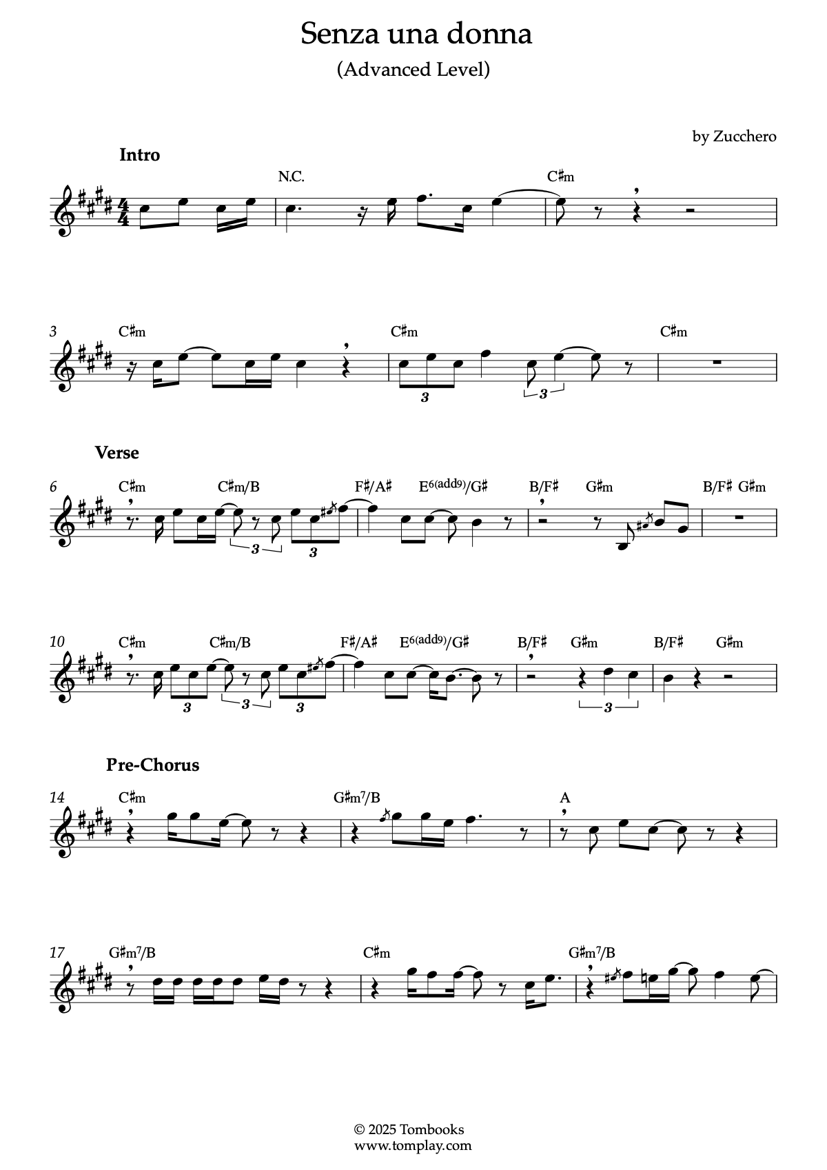 Téléchargez la partition Clarinette Senza una donna (Without a Woman) (niveau difficile) d…