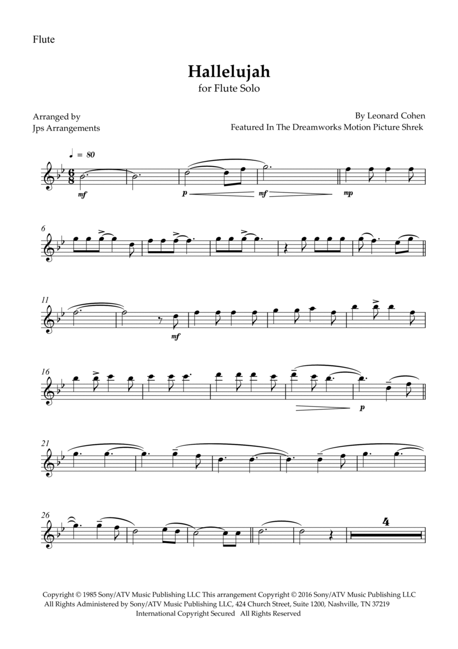 Flute Solo,Soprano Flute - Level 2 - Digital Download SKU: A0.1444452 By Andrea Bocelli. By Leonard Cohen. Arranged by Glauco Fernandes. Chamber,Film/TV,Instructional,Pop,Wedding. Individual part. 2 pages. Glauco Fernandes #1023852. Published by Glauco Fernandes (A0.1444452). Você está procurando um arranjo de partituras que combine facilidade de execução com qualidade profissional? Apresentamos nosso arranjo simplificado de “Hallelujah”, a icônica música de Leonard Cohen, também presente na trilha sonora do filme Shrek. Este arranjo é perfeito para estudantes que buscam um repertório satisfatório e desafiador, além de ser uma excelente ferramenta de ensino para educadores.Nosso arranjo é ideal para músicos de todos os níveis, inclusive profissionais que necessitam de praticidade e qualidade em suas apresentações. Seja para eventos, shows ou casamentos, esse arranjo oferece a combinação perfeita entre simplicidade e sofisticação, permitindo interpretar essa linda música com maestria e emoção.Obtenha sua partitura agora e leve suas apresentações musicais a um novo nível. Garanta um material que alie acessibilidade e excelência, atendendo às necessidades de músicos exigentes e comprometidos com a qualidade.Tags: partituras, arranjo simplificado, Aleluia, Leonard Cohen, trilha sonora, Shrek, estudantes de música, professores de música, músicos profissionais, eventos, casamentos, repertório musical, material didático, qualidade profissional, praticidade.