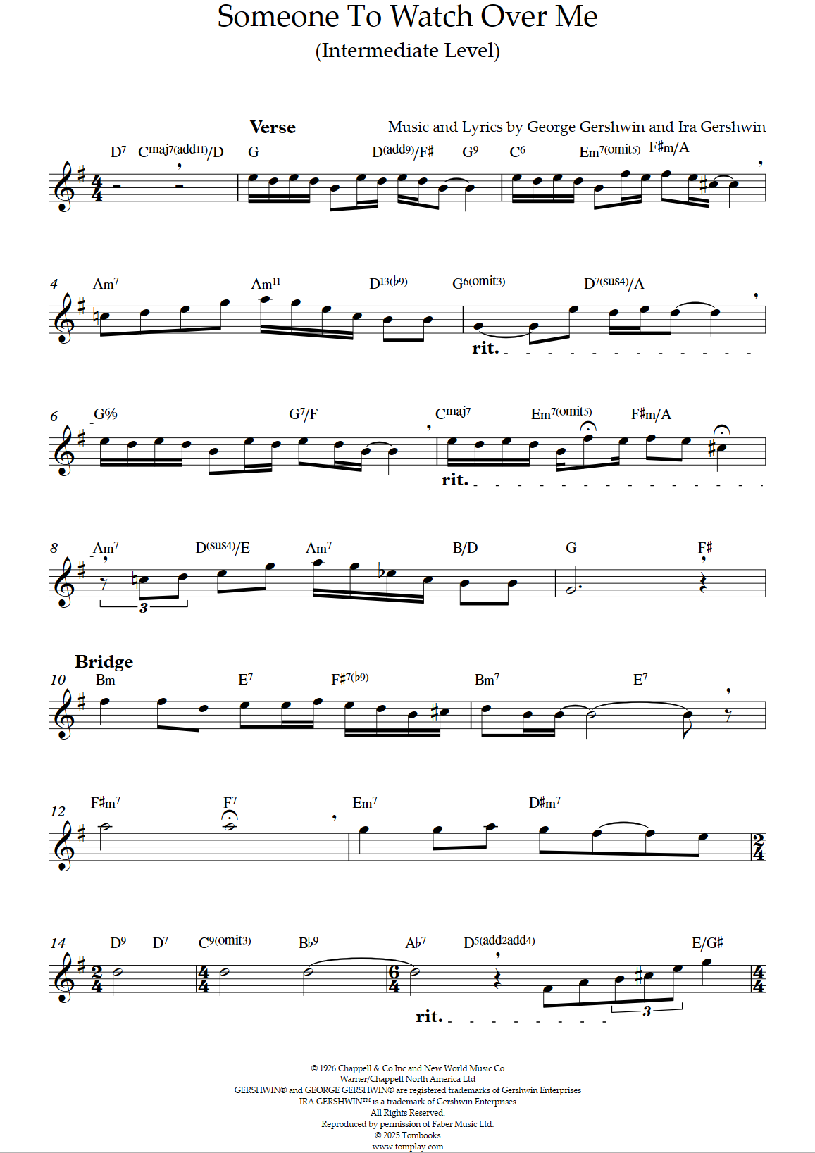 Téléchargez la partition Flûte Someone To Watch Over Me (niveau facile/intermédiaire) de E…