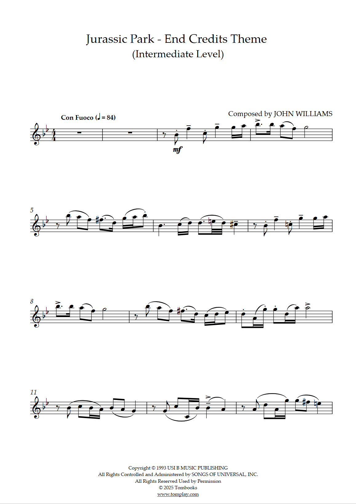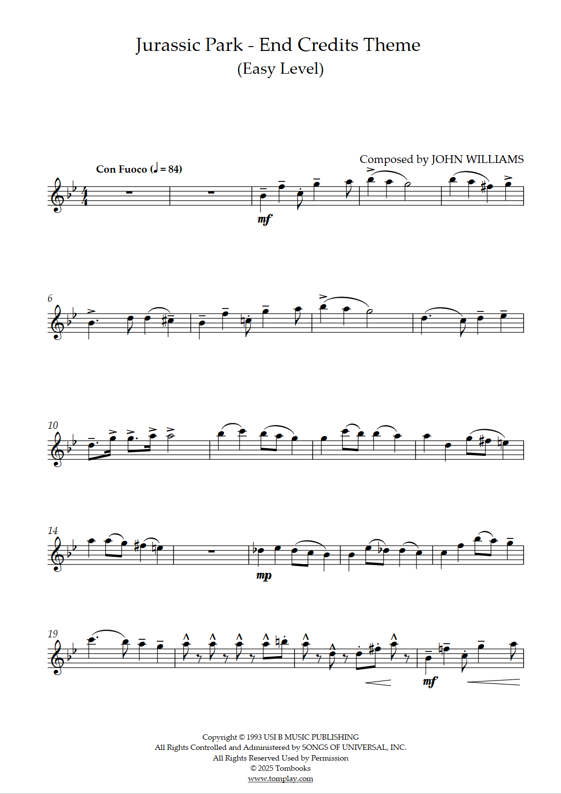 John Williams : Jurassic Park - Thème End Credits (niveau intermédiaire)