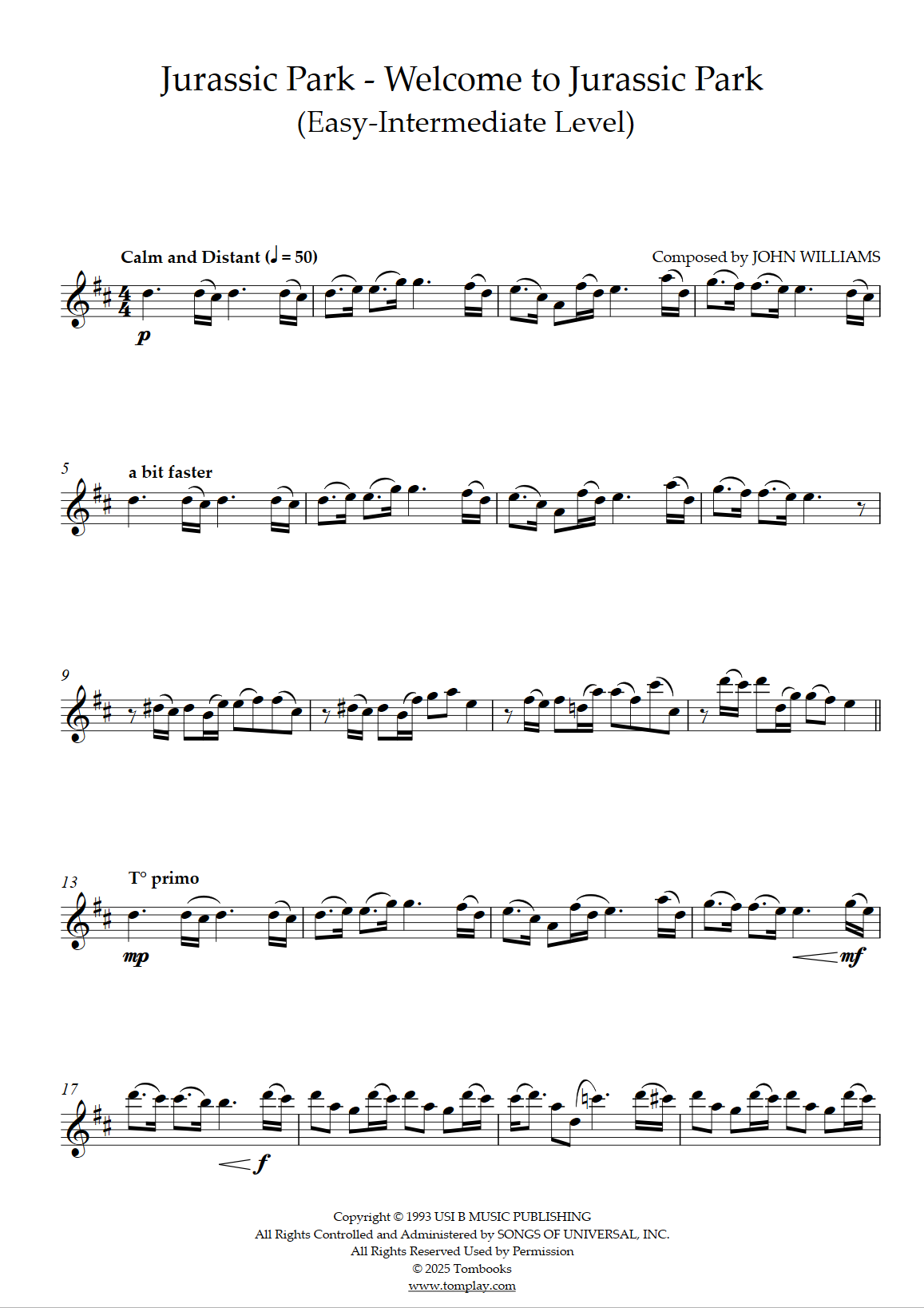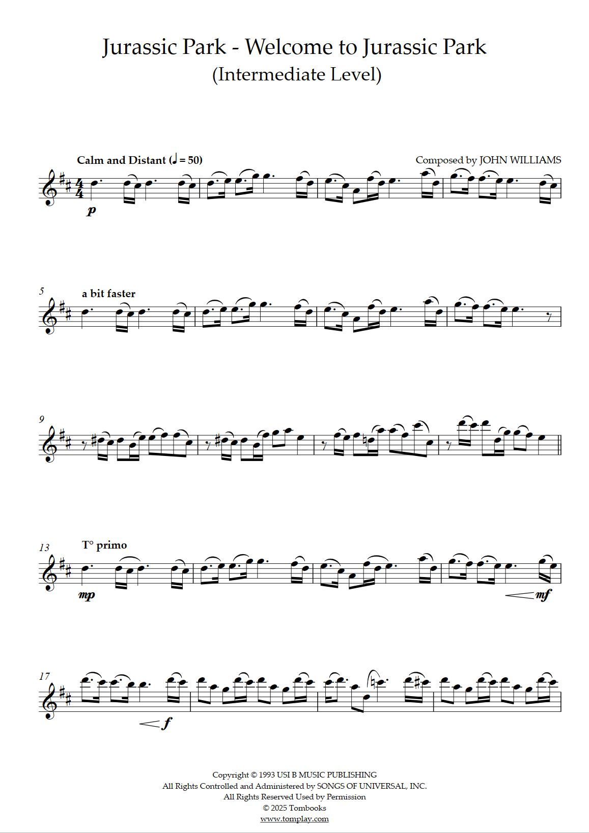 Téléchargez la partition Flûte Jurassic Park - Thème End Credits (niveau intermédiaire) de…