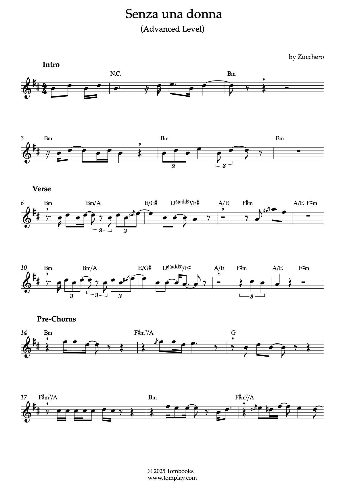 Téléchargez la partition Flûte Senza una donna (Without a Woman) (niveau difficile) de Pau…
