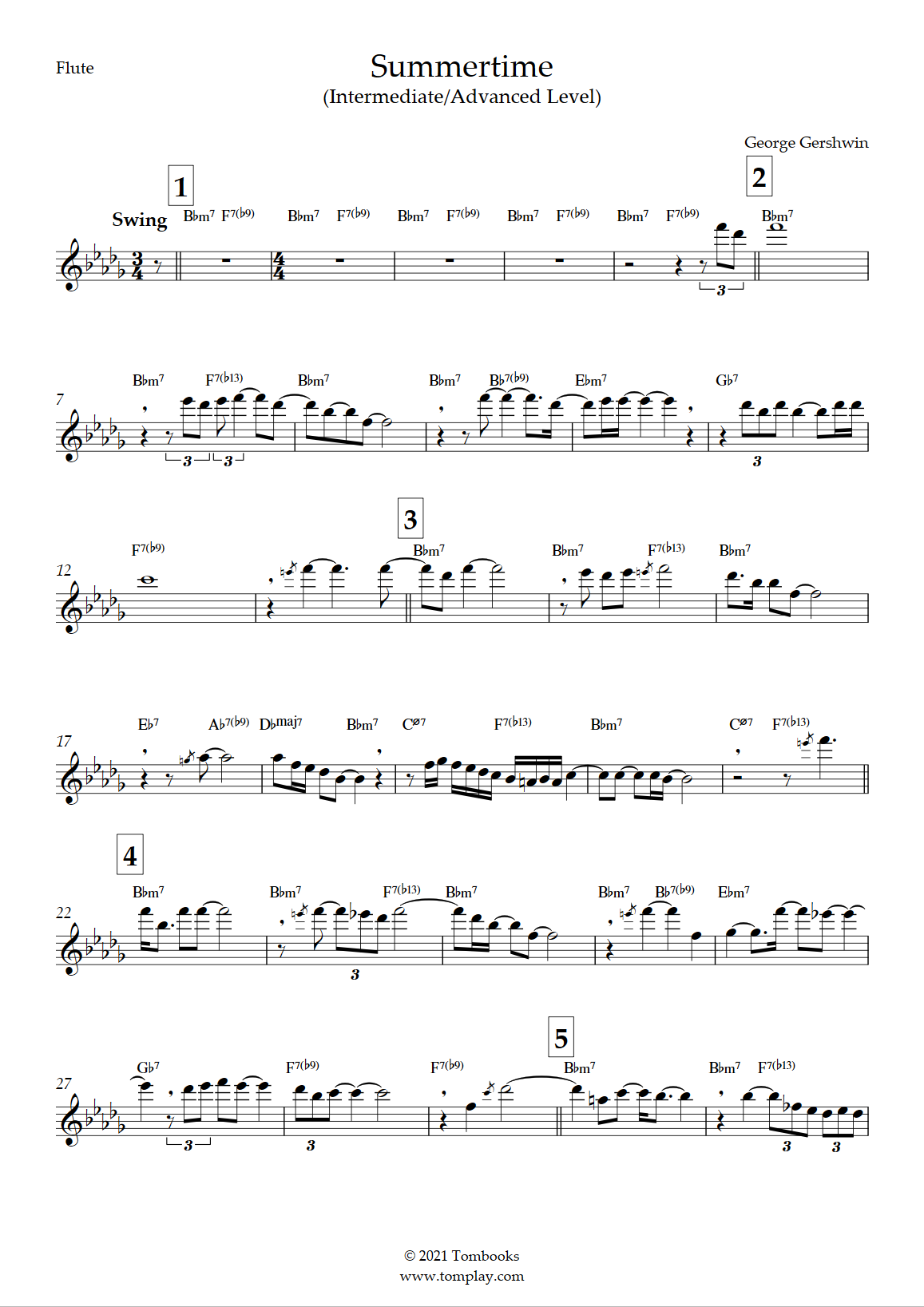 Téléchargez la partition Flûte Summertime (niveau intermédiaire…