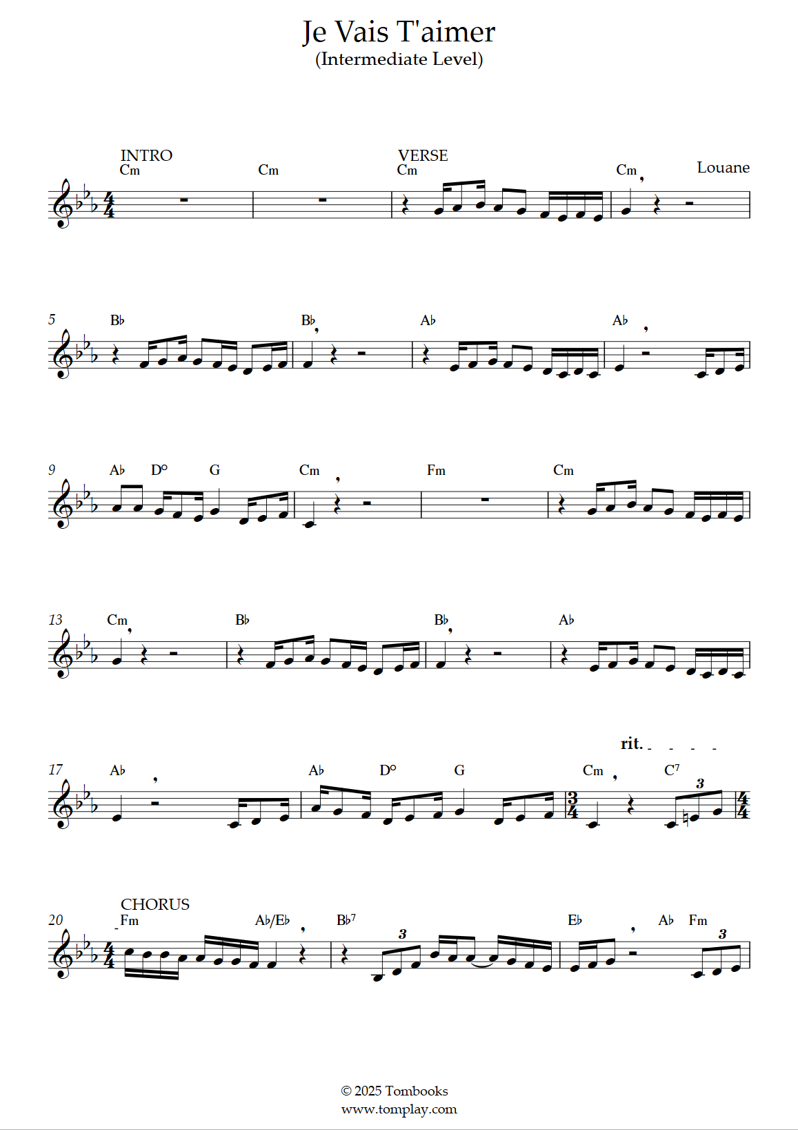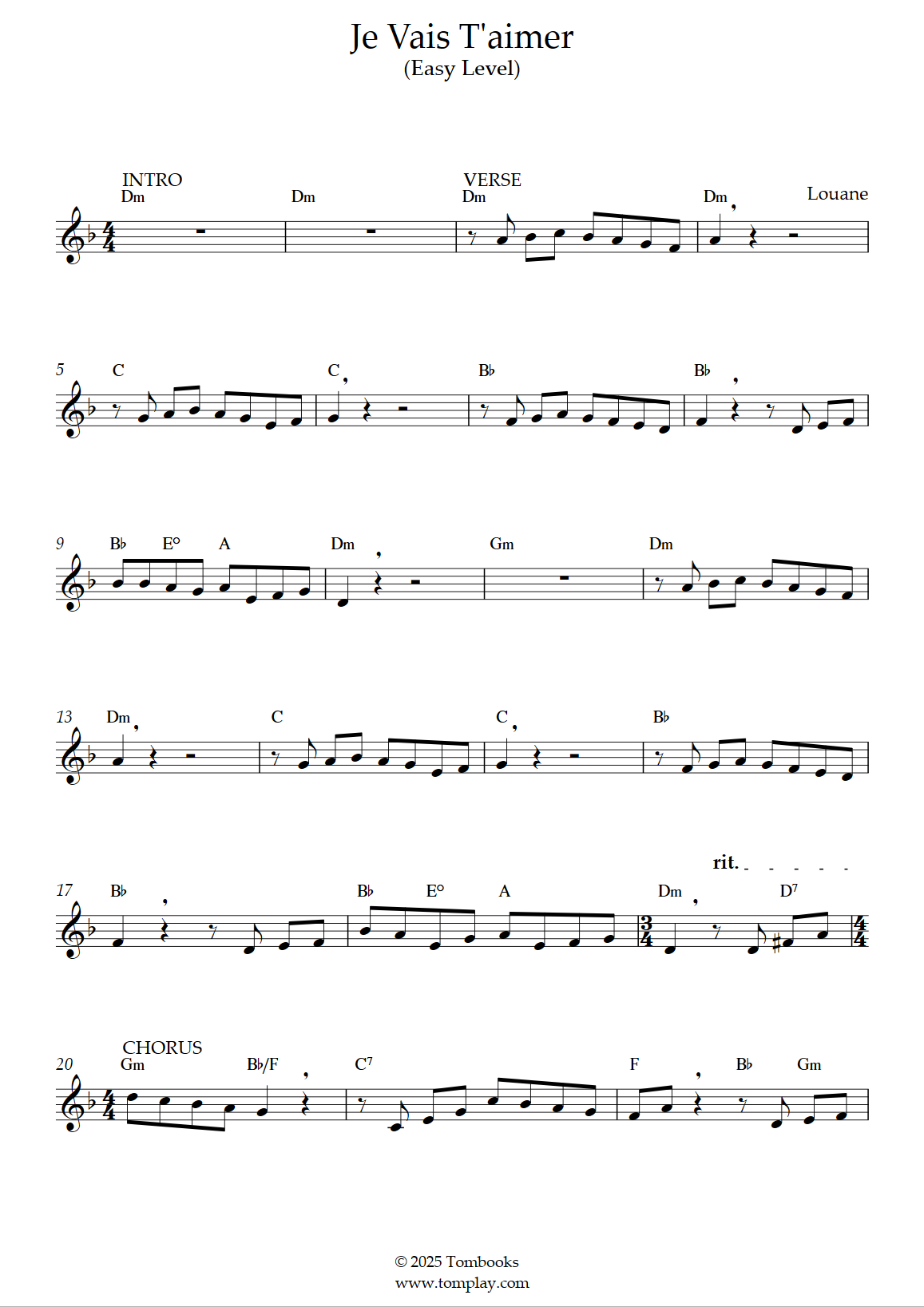 Téléchargez la partition Trompette Je vais t'aimer (niveau très facile) de Louane. Partiti…