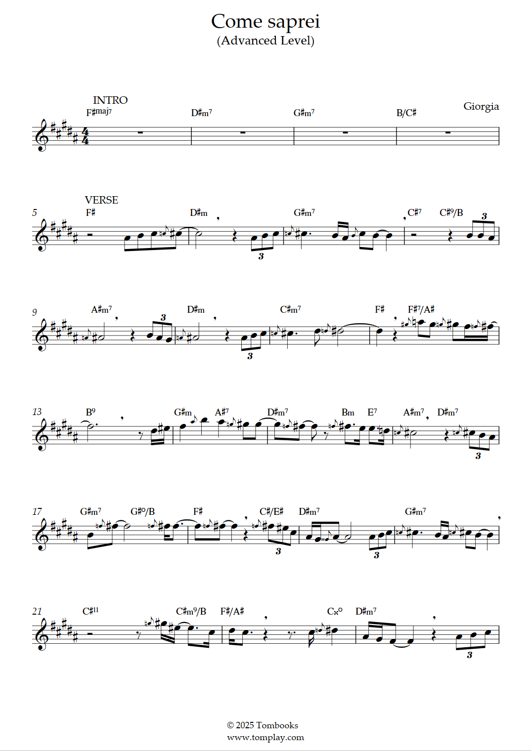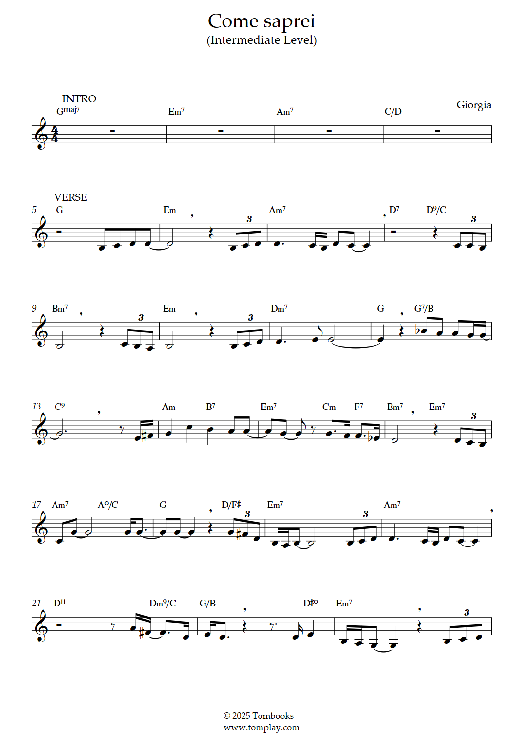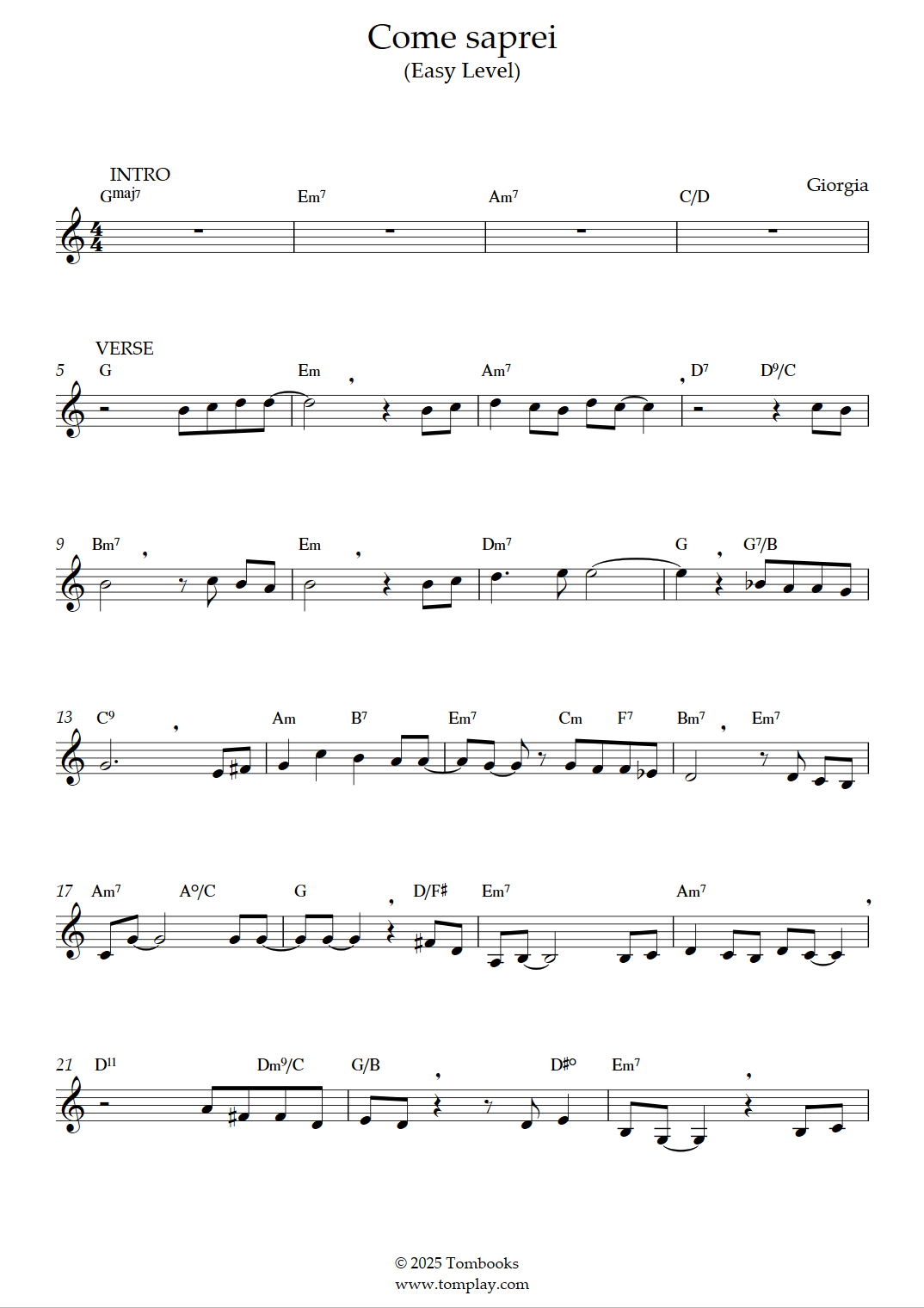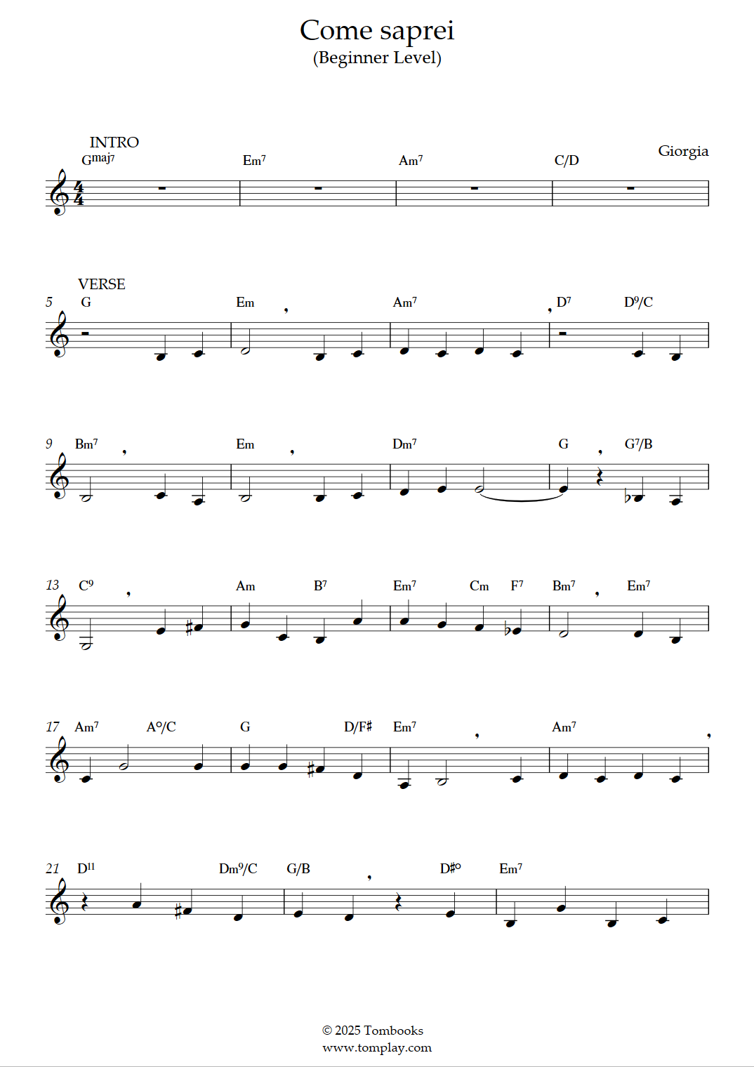 Téléchargez la partition Trompette Come saprei (niveau intermédiaire) de Giorgia. Partitio…