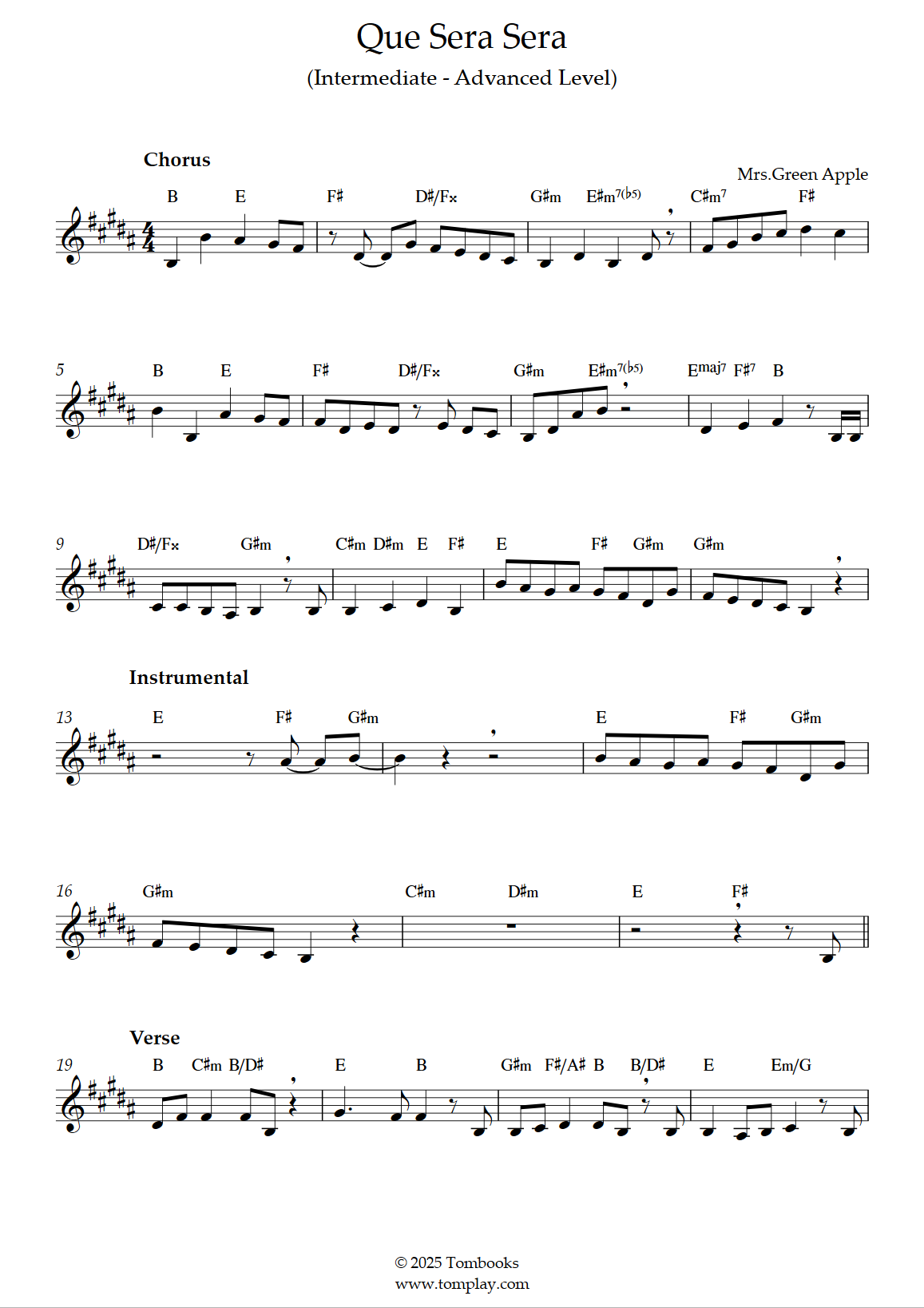 Mrs. Green Apple : Que Sera Sera (niveau intermédiaire/difficile)