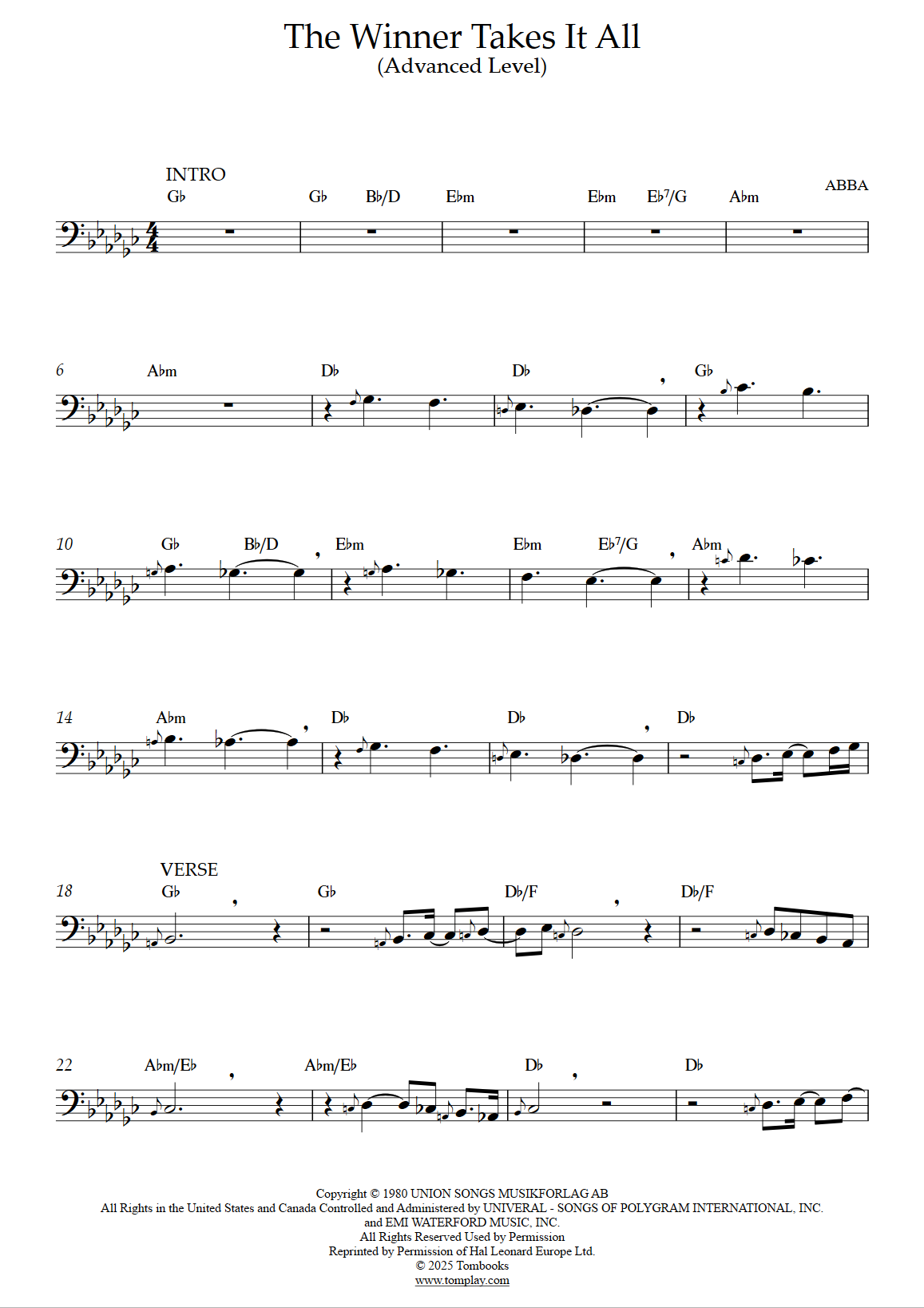 Téléchargez la partition Trombone The Winner Takes It All (niveau difficile) de ABBA. Part…