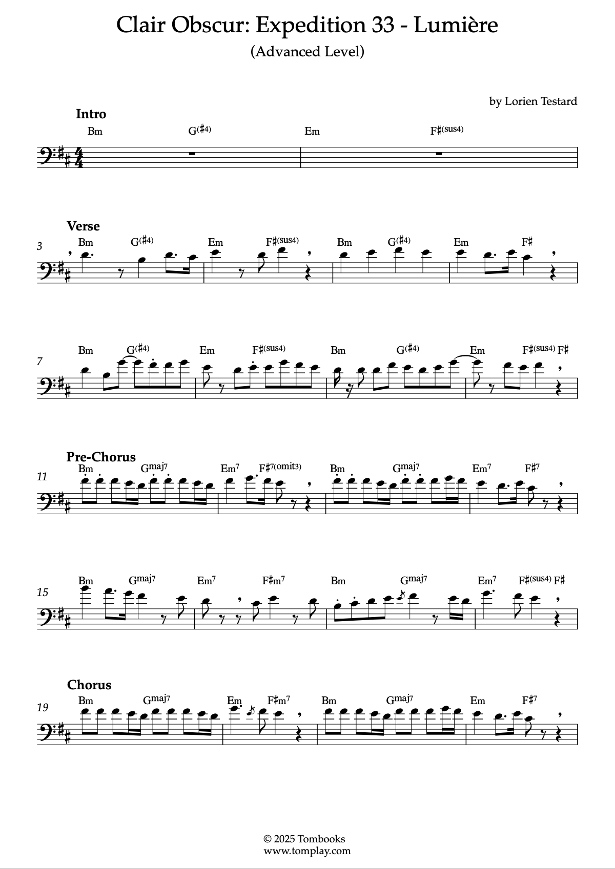 Téléchargez la partition Trombone Clair Obscur: Expedition 33 - Lumière (niveau difficile)…