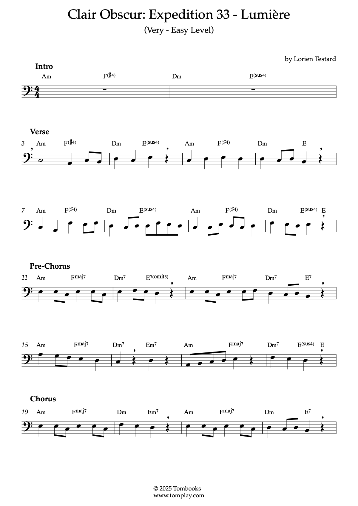 Téléchargez la partition Trombone Clair Obscur: Expedition 33 - Lumière (niveau très facil…