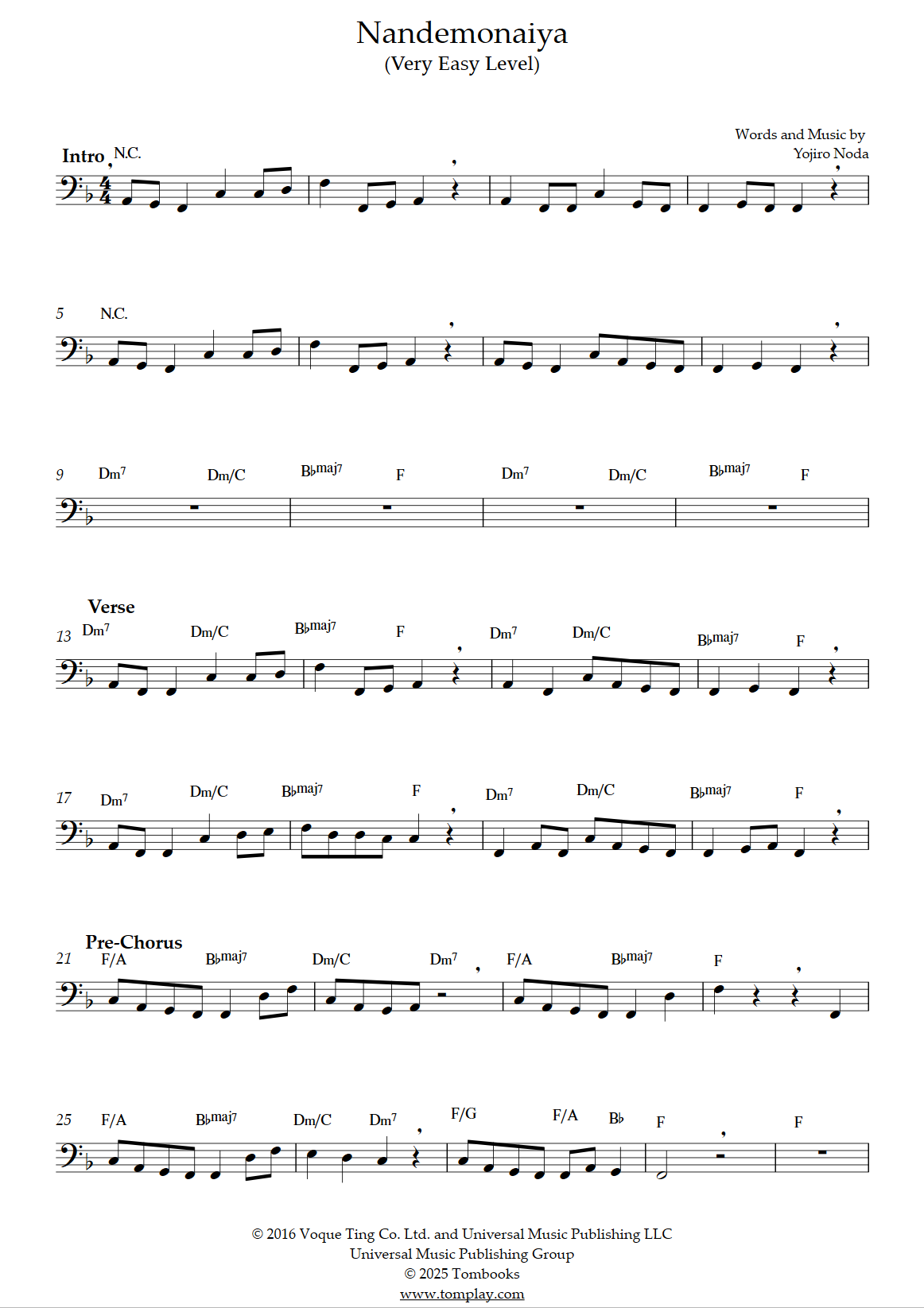 Téléchargez la partition Trombone Nandemonaiya (niveau très facile) de Radwimps. Partition…