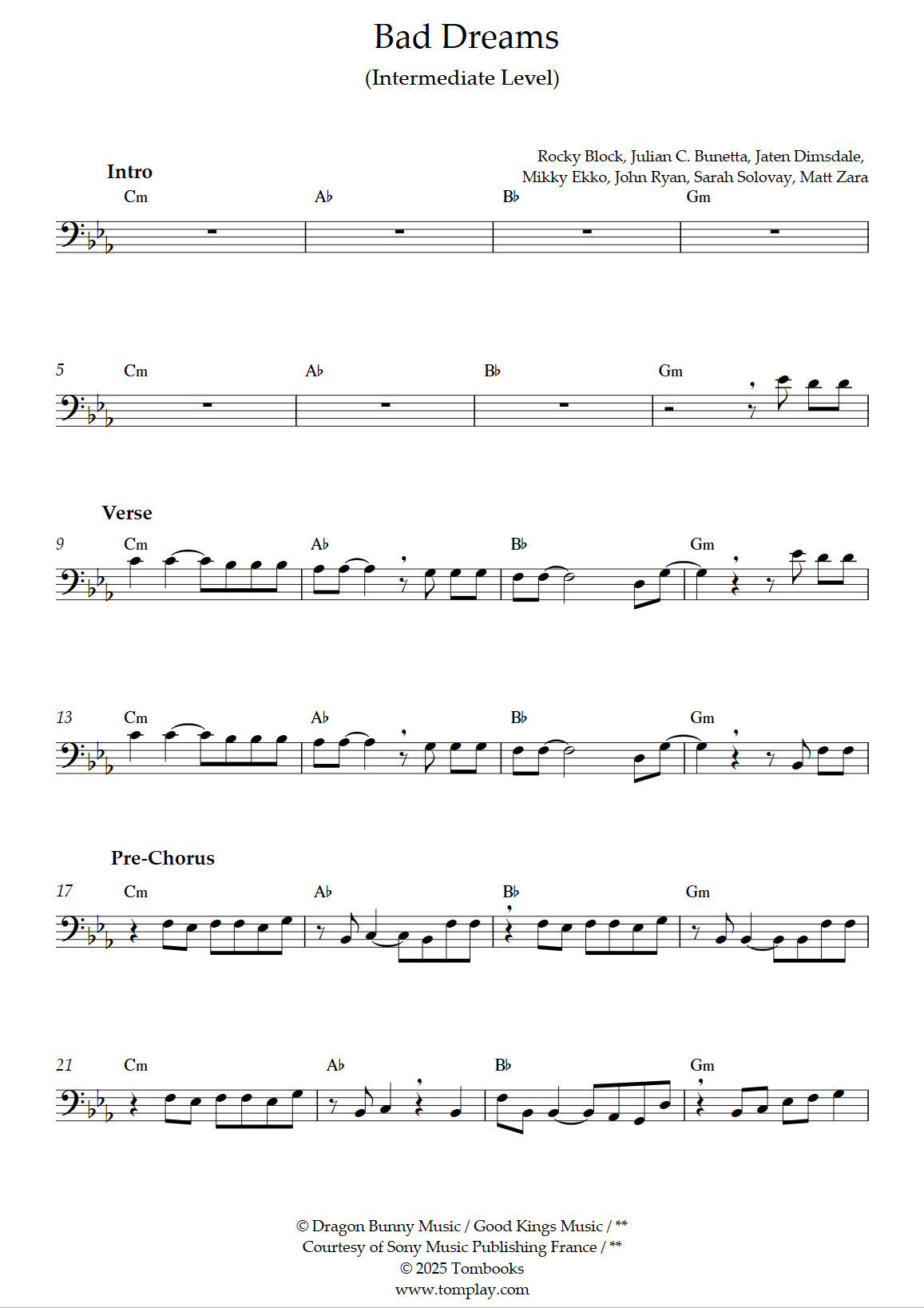 Trombone Solo - Level 3 - Digital Download SKU: A0.1398797 By Teddy Swims. By Jaten Dimsdale (Teddy Swims), Joshua Coleman, Julian Bunetta, Marco Antonio Rodriguez Diaz, and Mikky Ekko. Arranged by Guillaume Martin. 21st Century,Film/TV,Instructional,Pop,Singer/Songwriter. Individual part. 3 pages. Guillaume Martin #982074. Published by Guillaume Martin (A0.1398797). Pop Songs Collection - LOSE CONTROL (TEDDY SWIMS)POP SONGS COLLECTION brings together solo arrangements (in easy keys) of the most popular songs, featuring sheet music for more than fifteen different instruments.Copyright © 2024 Big Deal Music, LLC / Kobalt Music Services Ltd. / Sony/ATV Music Publishing LLC / Universal Music Publishing Group / Warner/Chappell Music, Inc.