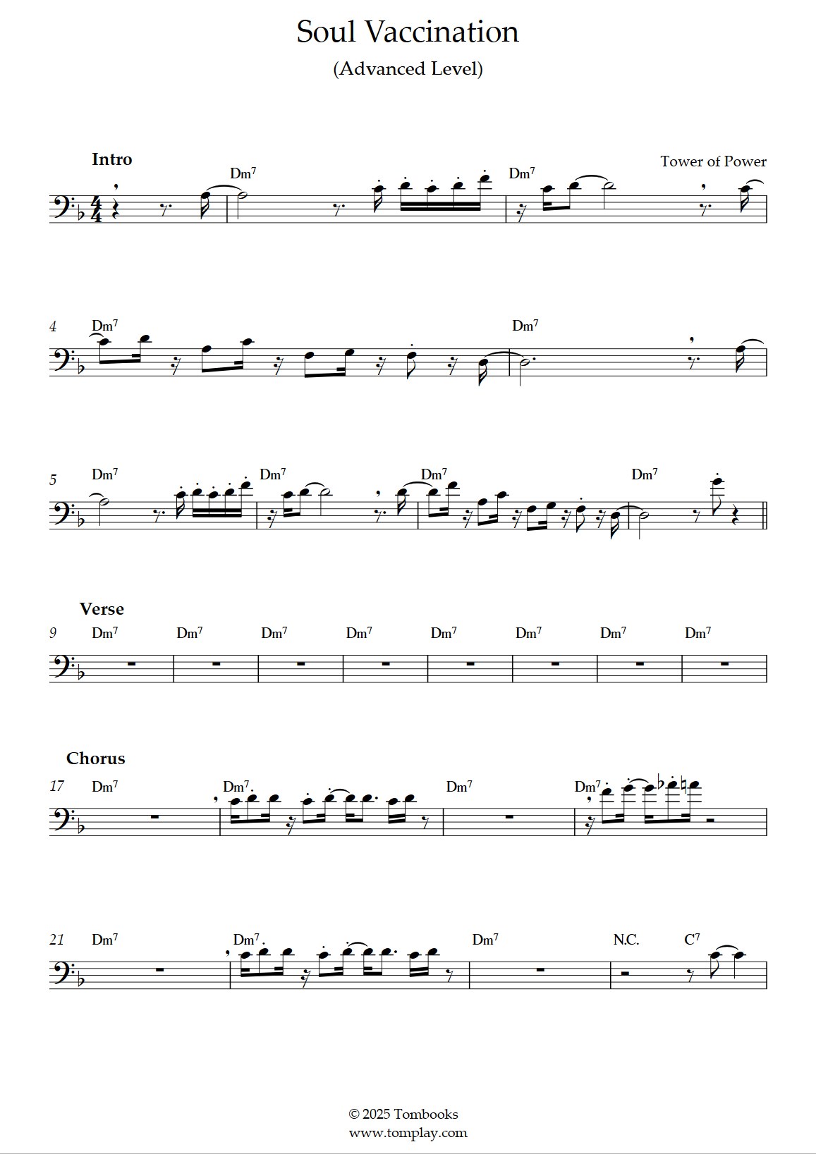Téléchargez la partition Trombone Soul Vaccination (niveau difficile) de Tower of Power. P…