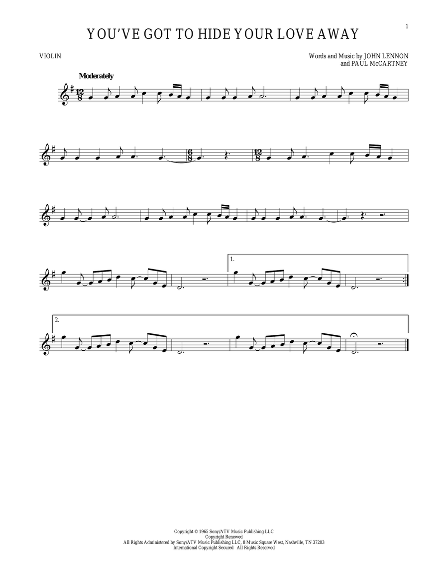 ve Got to Hide Your Love Away Digital Sheetmusic - instantly downloadable sheet music plus an interactive, downloadable digital sheet music file, scoring: Instrumental Solo, instruments: Violin