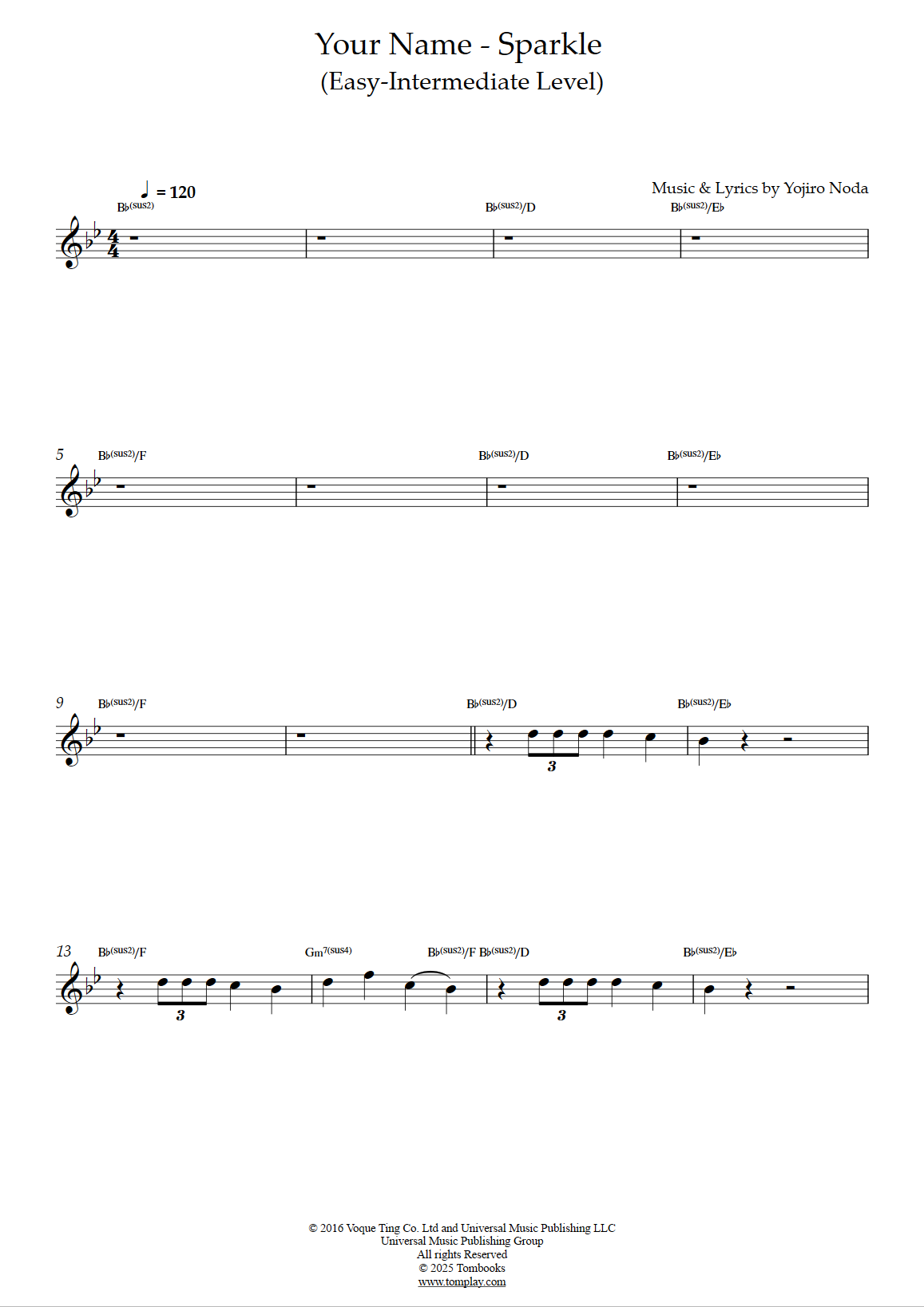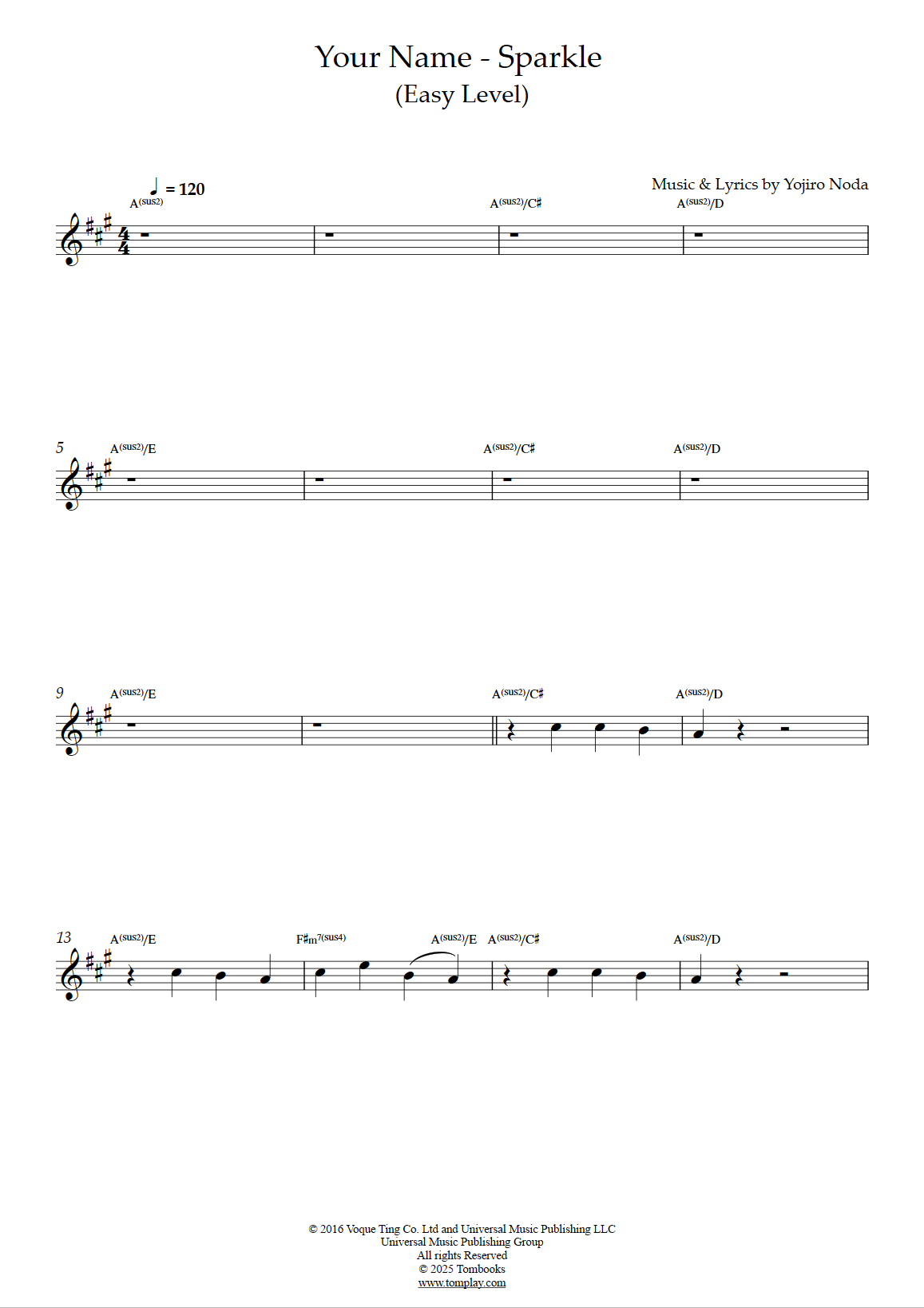 Téléchargez la partition Violon Your Name - Sparkle (niveau facile) de Radwimps. Partition…