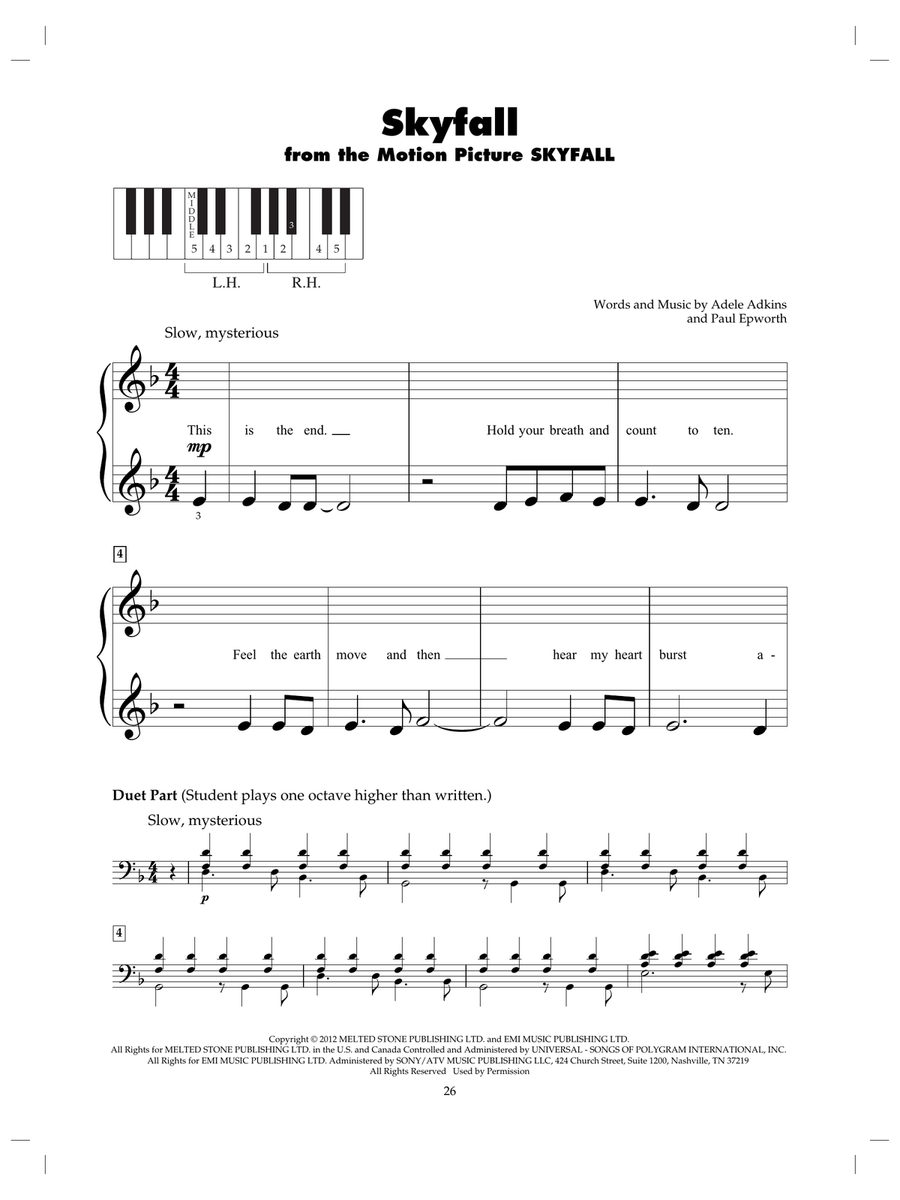 Electronic Keyboard,Organ,Piano and Keyboard - Digital Download SKU: HX.447141 By Adele. This edition: scorch. E-Z Play Today. Pop. Score. 5 pages. Published by Hal Leonard - Digital (HX.447141). About Hal Leonard E-Z Play TodayFor organs, pianos, and electronic keyboards. E-Z Play Today is the shortest distance between beginning music and playing fun. Now there are more than 300 reasons why you should play E-Z Play Today. * World's largest series of music folios * Full-size books - large 9 x 12 format features easy-to-read, easy-to-play music * Accurate arrangements... simple enough for the beginner, but accurate chords and melody lines are maintained * Eye-catching, full-color covers * Lyrics... most arrangements include words and music * Most up-to-date registrations - books in the series contain a general registration guide, as well as individual song rhythm suggestions * Guitar Chord Chart - all songs in the series can also be played on guitar.