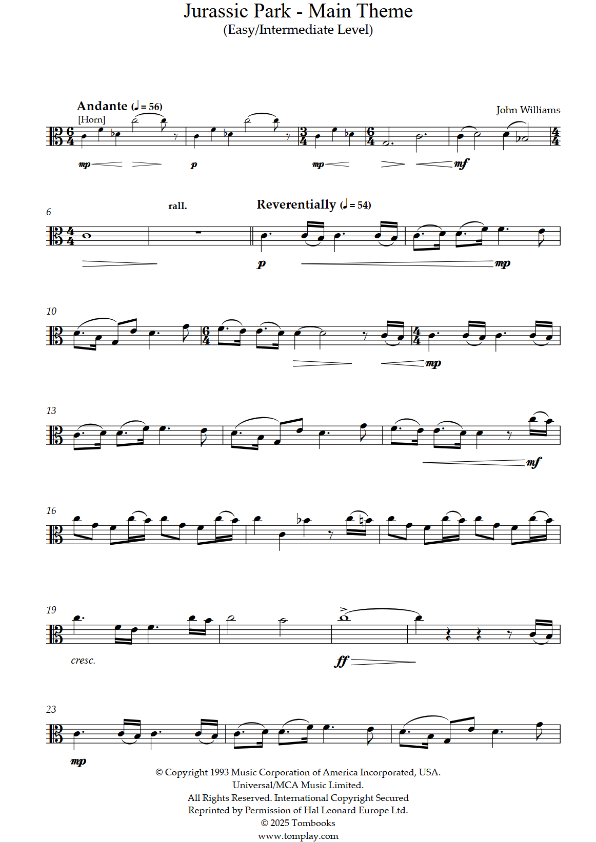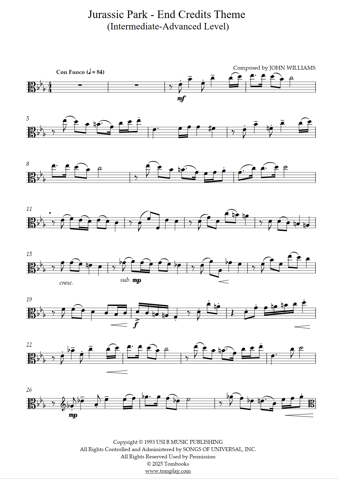 Téléchargez la partition Alto Jurassic Park - Thème principal (niveau intermédiaire) de Jo…