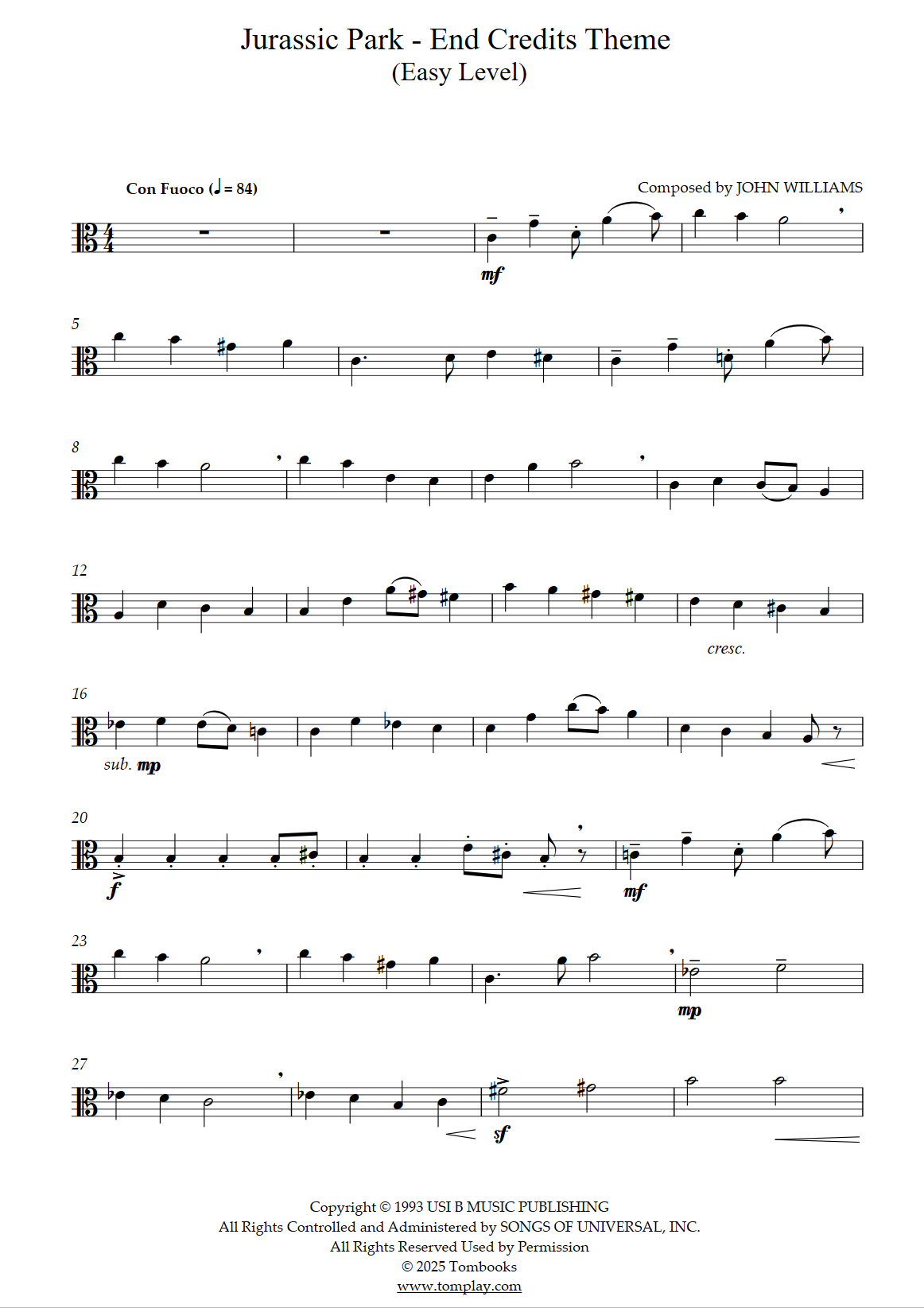 Téléchargez la partition Alto Jurassic Park - Thème End Credits (niveau difficile) de John…