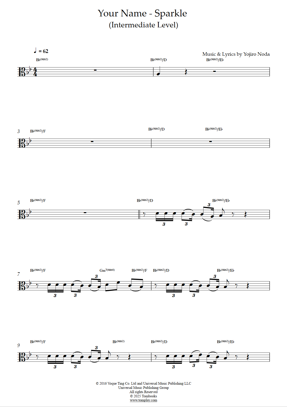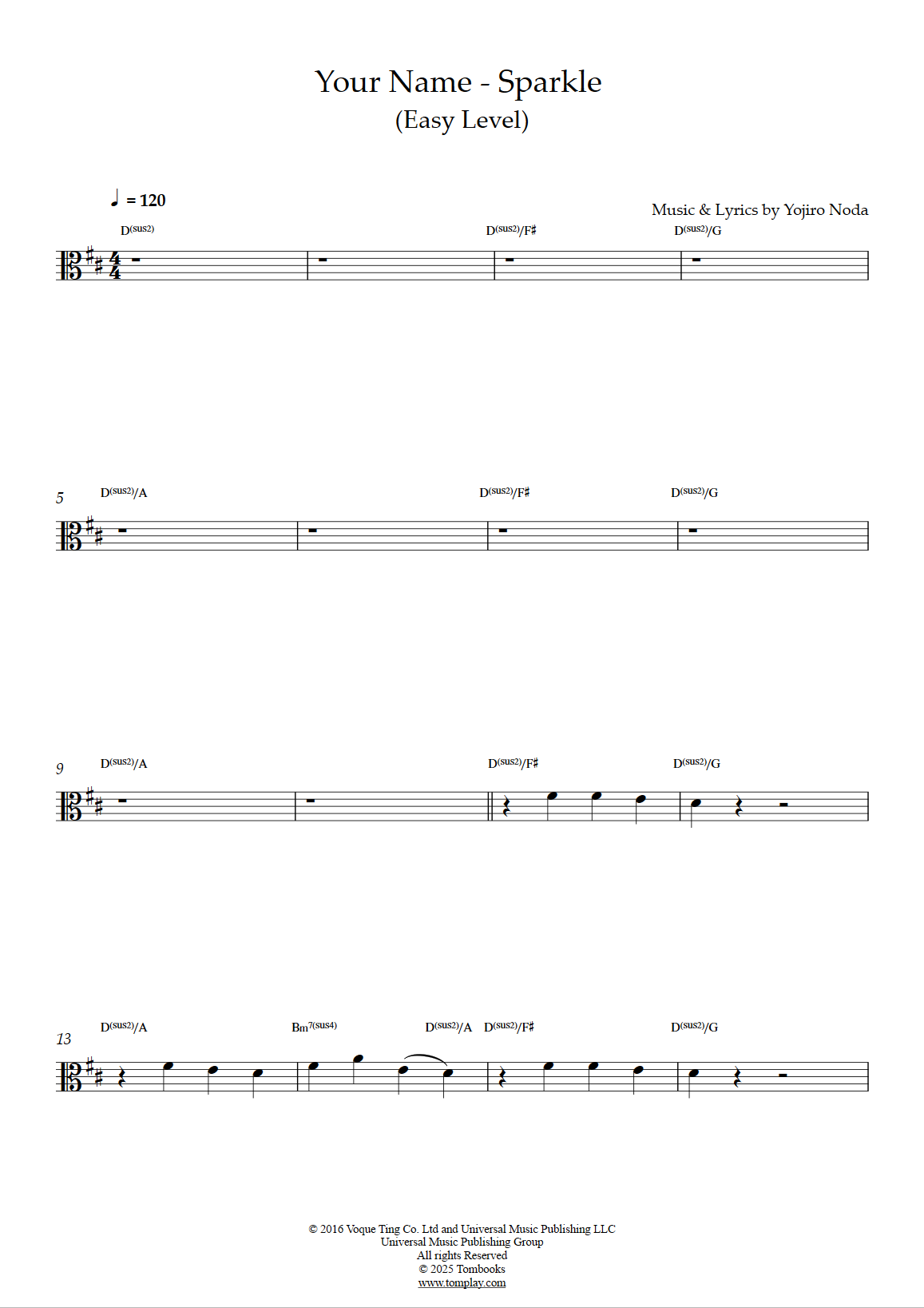 Téléchargez la partition Alto Your Name - Sparkle (niveau facile) de Radwimps. Partition p…