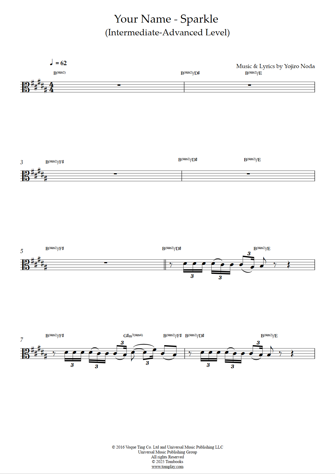 Téléchargez la partition Alto Your Name - Sparkle (niveau intermédiaire) de Radwimps. Part…