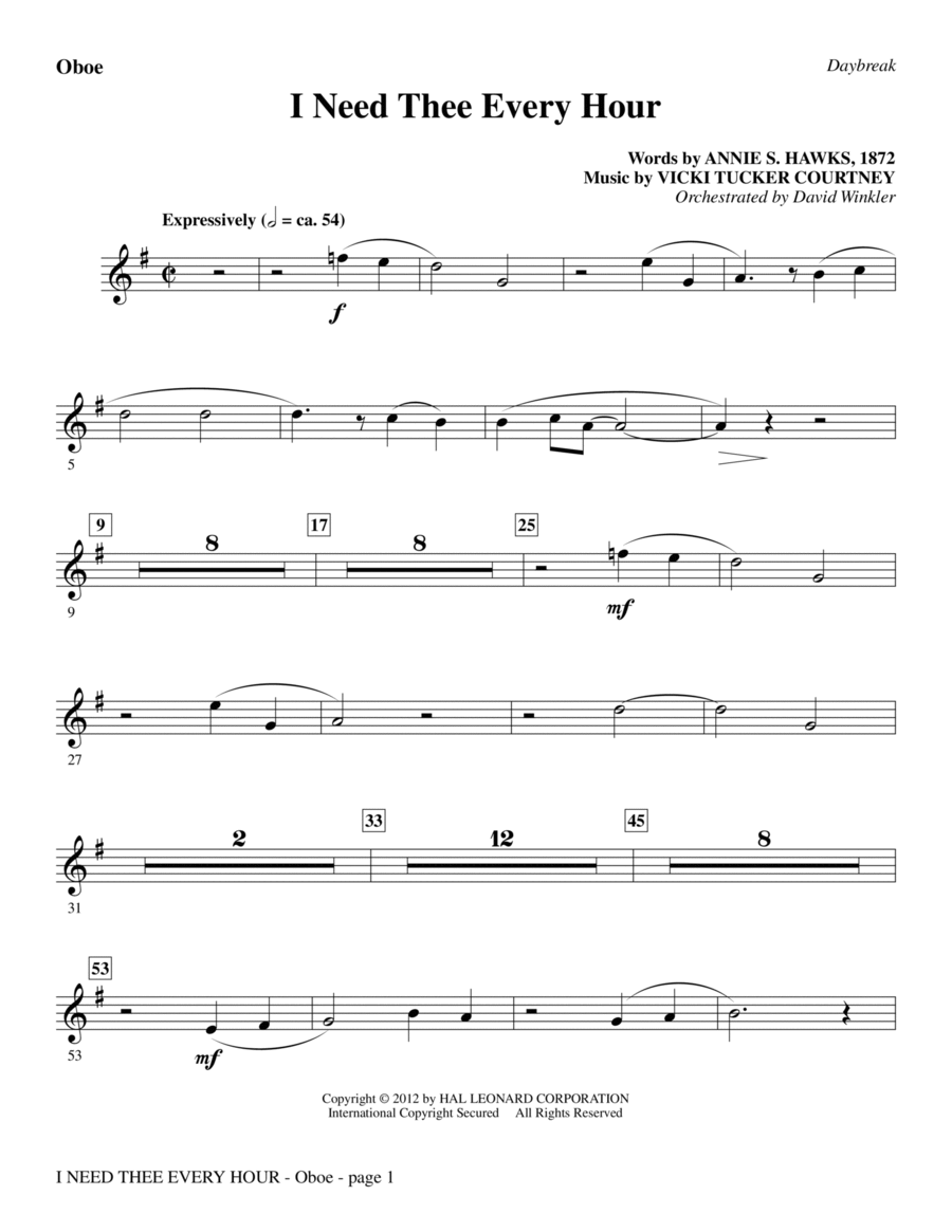 I Need Thee Every Hour - Oboe