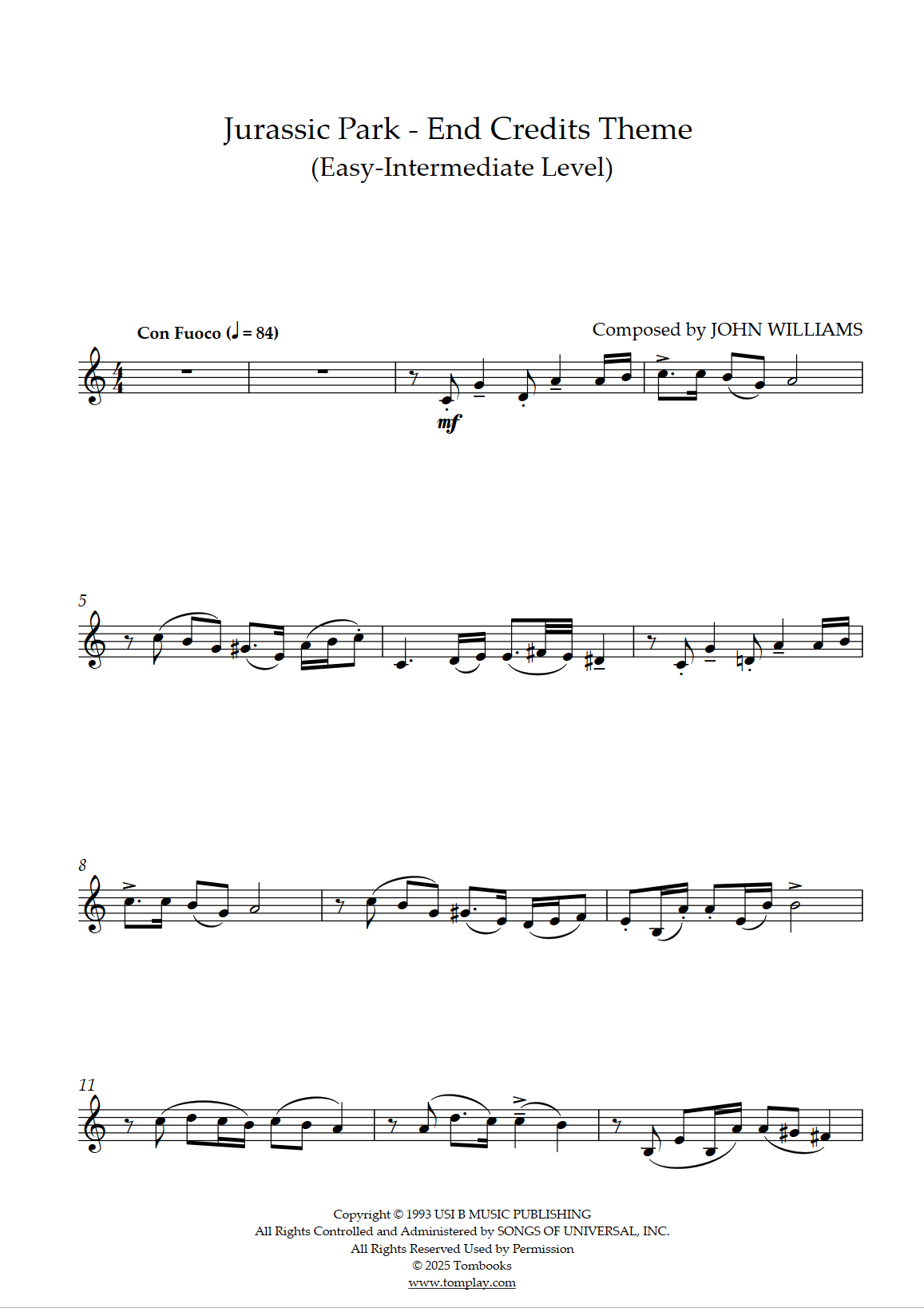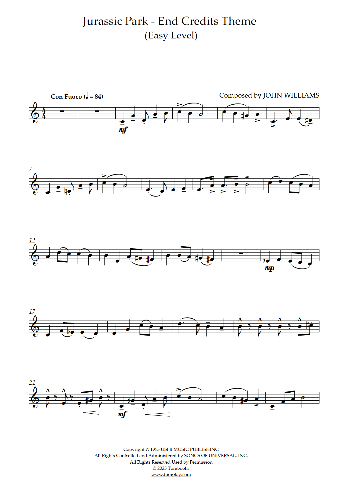 John Williams : Jurassic Park - Thème End Credits (niveau facile)