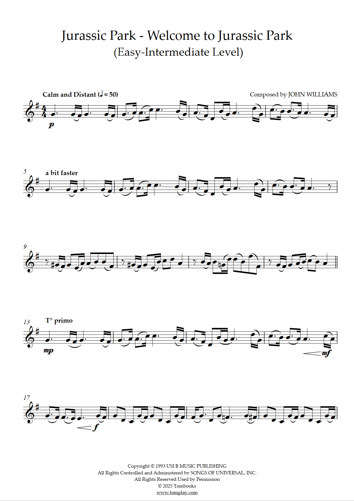 John Williams : Jurassic Park - Thème principal (niveau intermédiaire)