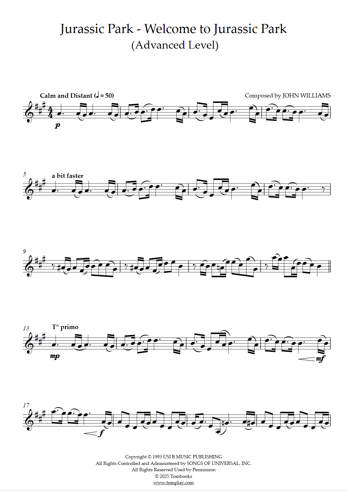 John Williams : Welcome to Jurassic Park (niveau difficile)