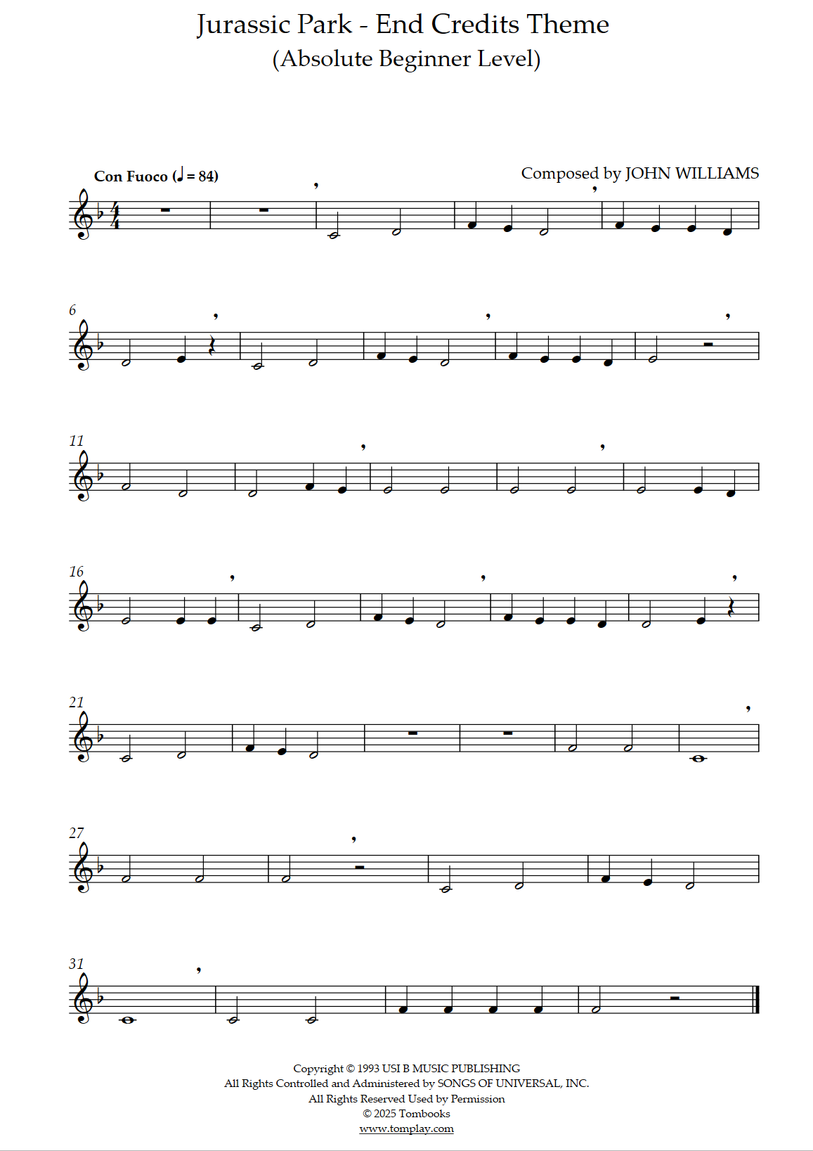 John Williams : Jurassic Park - Thème End Credits (niveau facile)