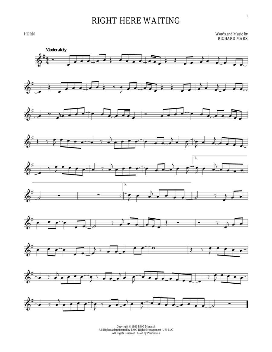 Richard Marx: Right Here Waiting sheet music to print instantly for horn solo