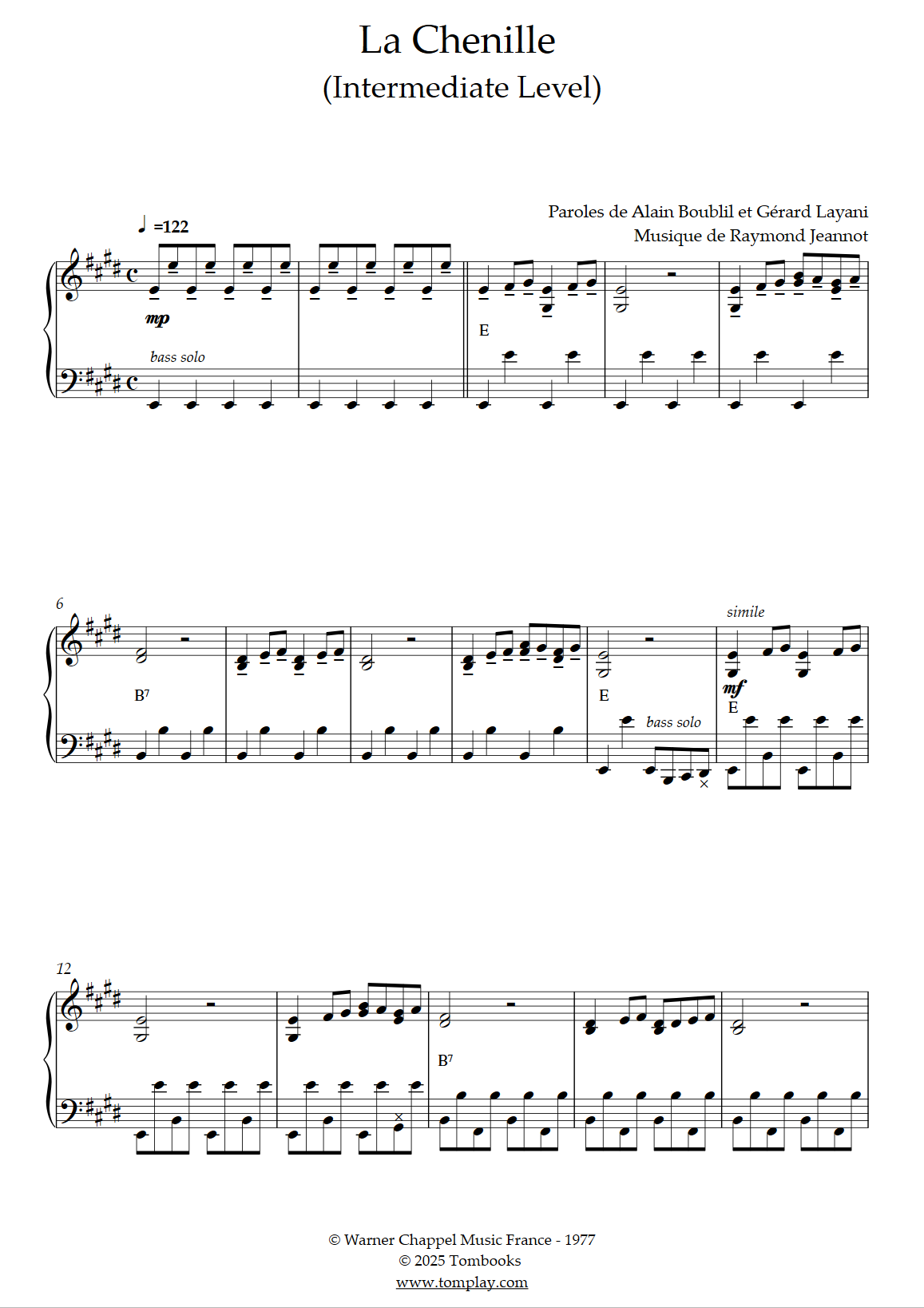 Téléchargez la partition Accordéon La Chenille (niveau intermédiaire, accordéon basses chr…