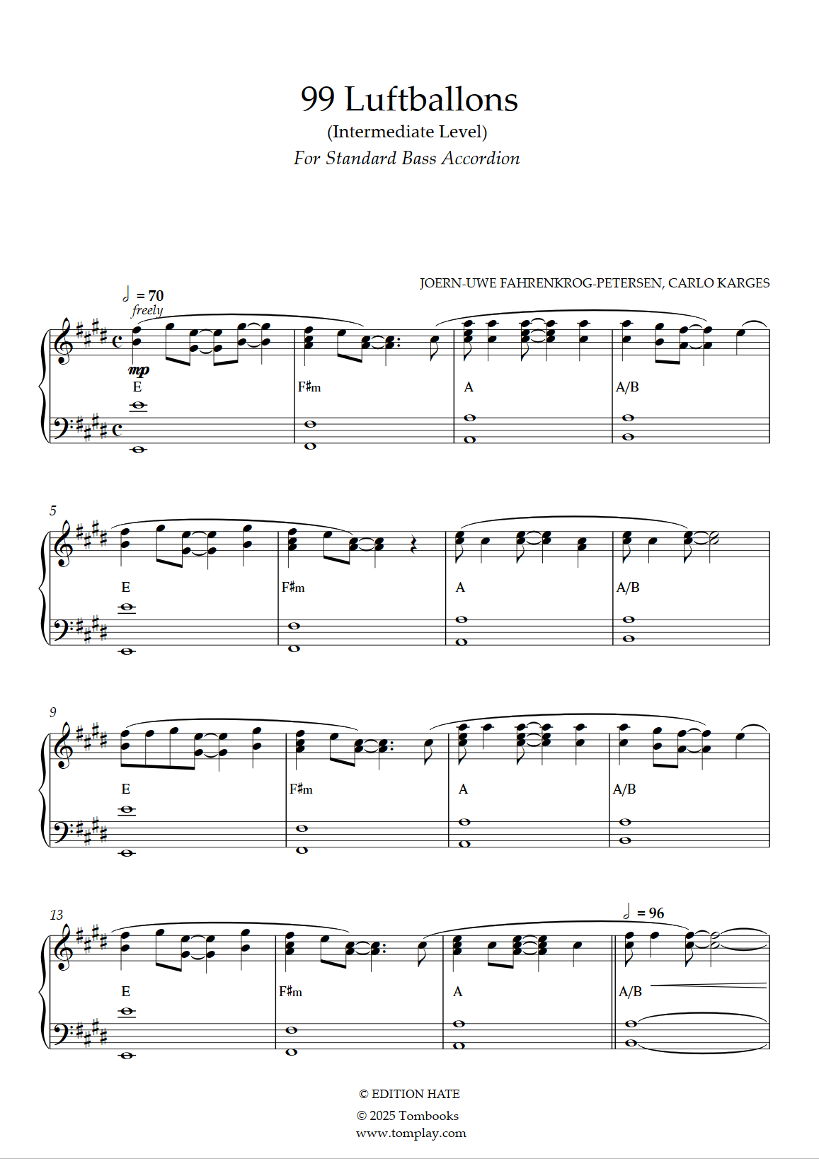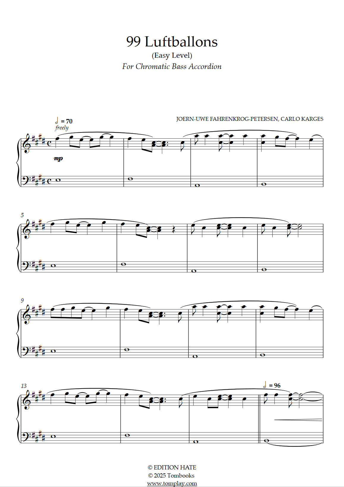 Téléchargez la partition Accordéon 99 Luftballons (niveau intermédiaire, accordéon solo) d…