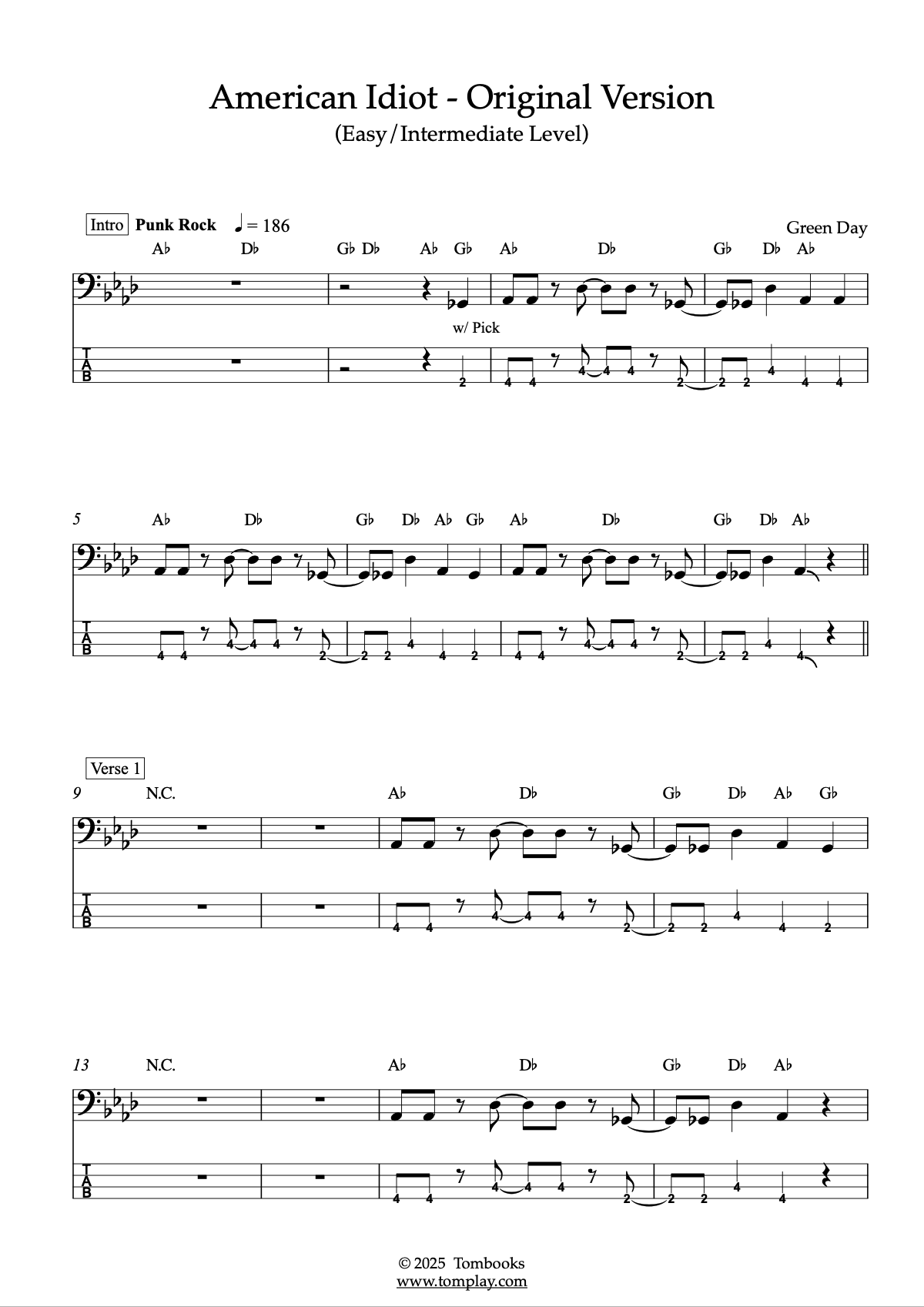 Téléchargez la tablature et la partition Basse American Idiot - Version originale (niveau …