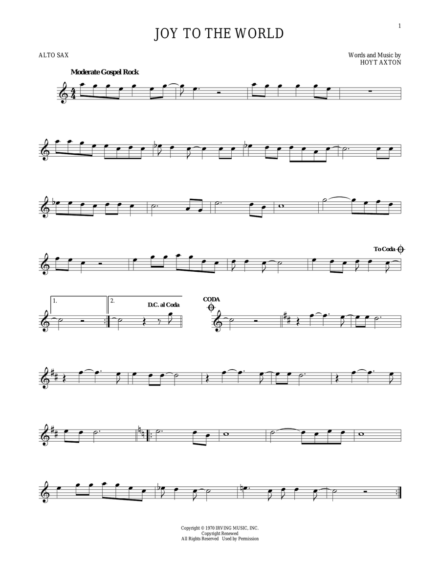 Performed by: Three Dog Night: Joy To the World Digital Sheetmusic - instantly downloadable sheet music plus an interactive, downloadable digital sheet music file (this arrangement does not contain lyrics), scoring: Instrumental Solo, instruments: Alto Saxophone