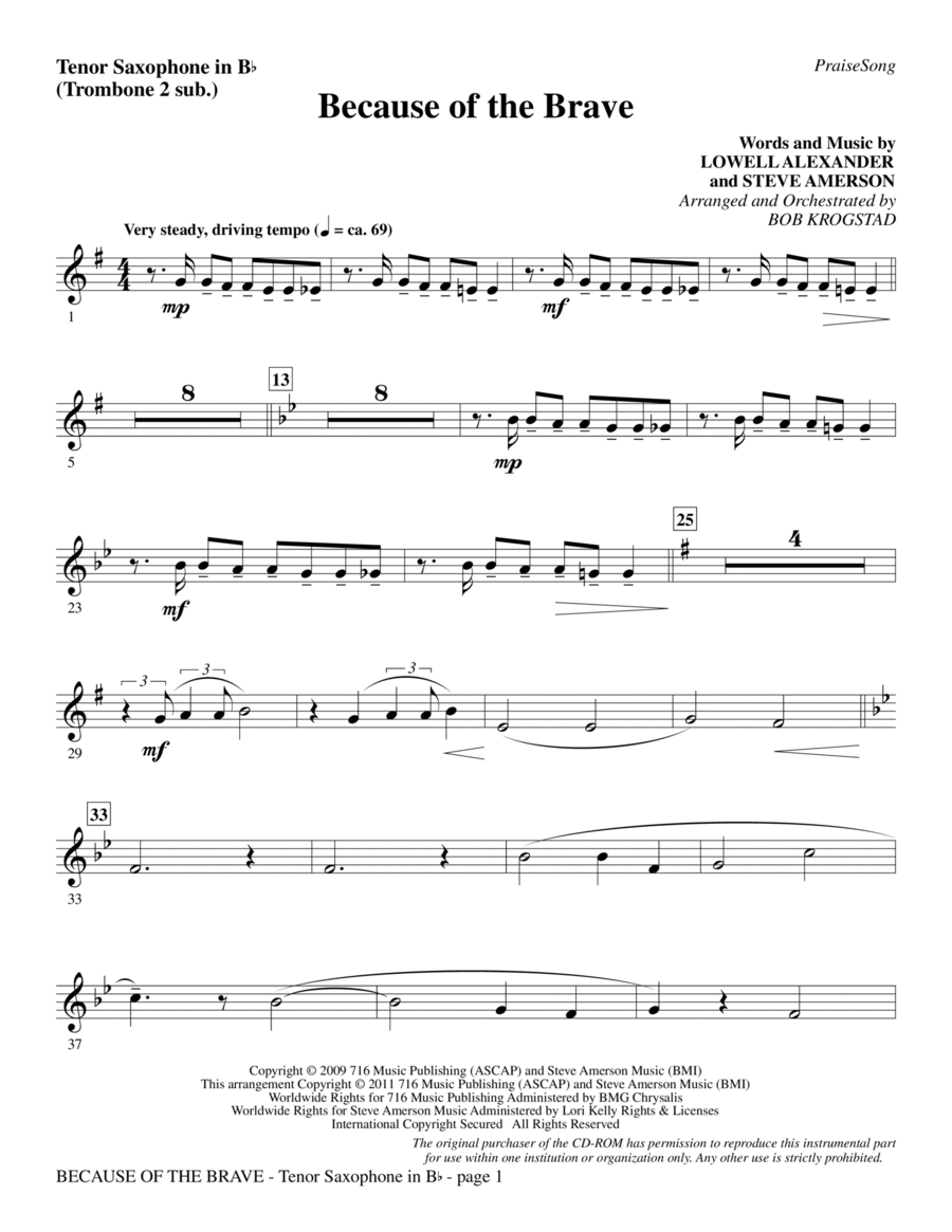 Because Of The Brave - Tenor Sax (sub. Tbn 2)