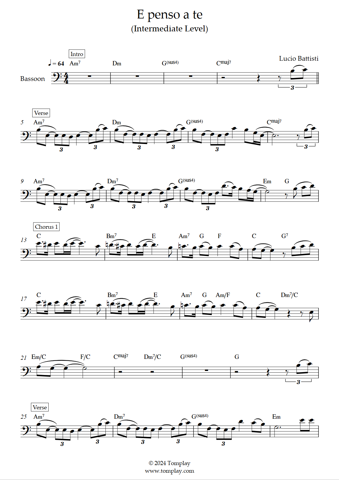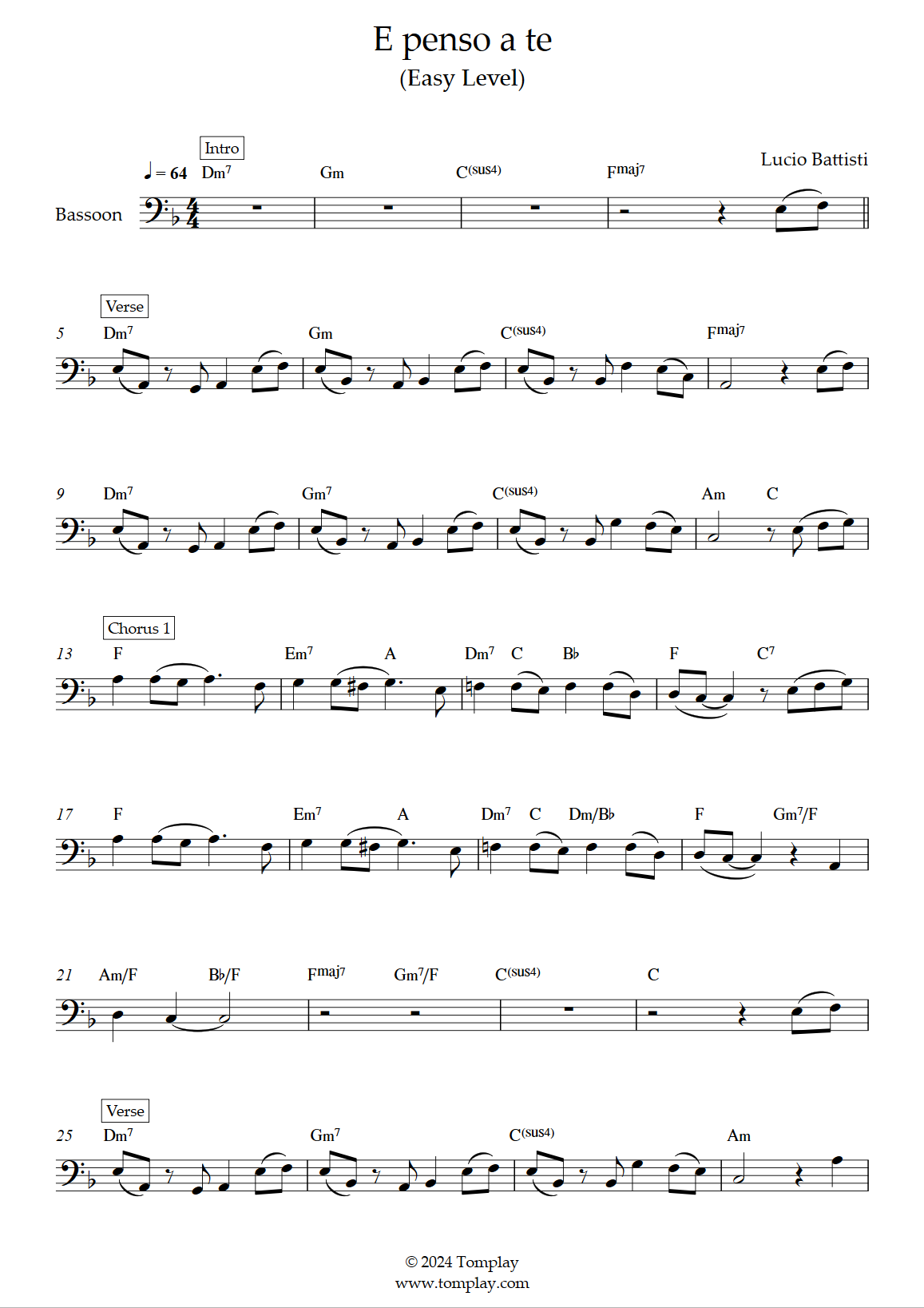 Bassoon Solo - Level 3 - Digital Download SKU: A0.1013075 Composed by Giuseppe Verdi. Arranged by Stephen Holloway. Opera,Romantic Period. Individual part. 6 pages. McKenzie Music #5896727. Published by McKenzie Music (A0.1013075). Develop a true singing tone with your bassoon by playing these vocal gems arranged for your instrument. This is the thirdt in a series called Bel Canto Bassoon. These arrangements for bassoon of operatic arias, many from the Bel Canto period and school, are both great fun to play and will help to develop a rich, singing tone. They are aimed at intermediate players, approximately ABRSM grade 4 - 6.Infelice! e tuo credevi is from Verdi's opera Ernani. This is an early work of Verdi's and true bel canto, both in period and style. Its cantabile phrases, over a simple accompaniment filling in the harmonies, will encourage the player to make his/her instrument really sing.