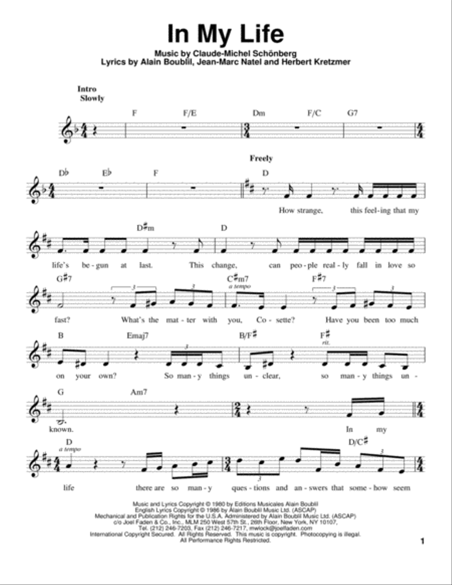 Digital Download SKU: HX.397039 By Alain Boublil and Claude-Michel Schonberg. Broadway,Film/TV,Musical/Show. Pro Vocal. 2 pages. Published by Hal Leonard - Digital (HX.397039).
