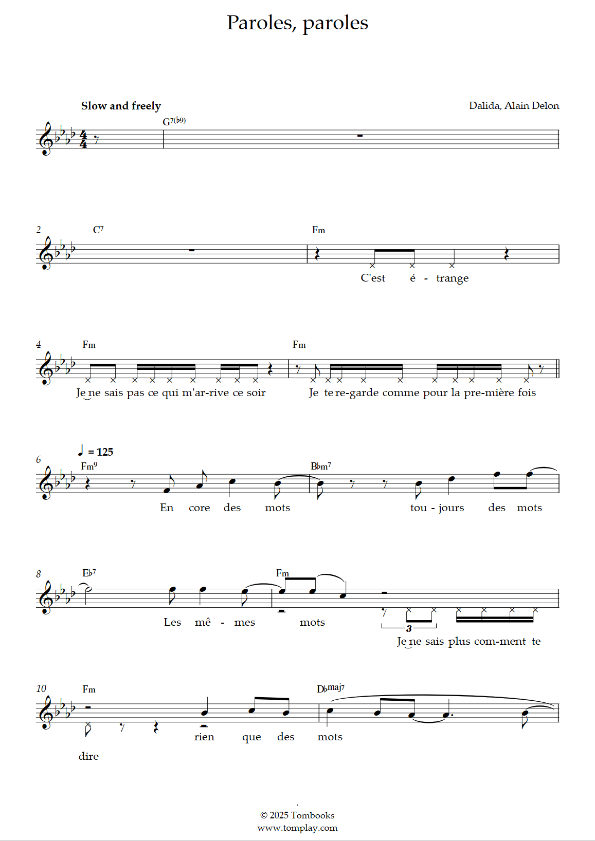 Téléchargez la partition Chant Paroles, paroles de Alain Delon. Partition pour Avec accomp…