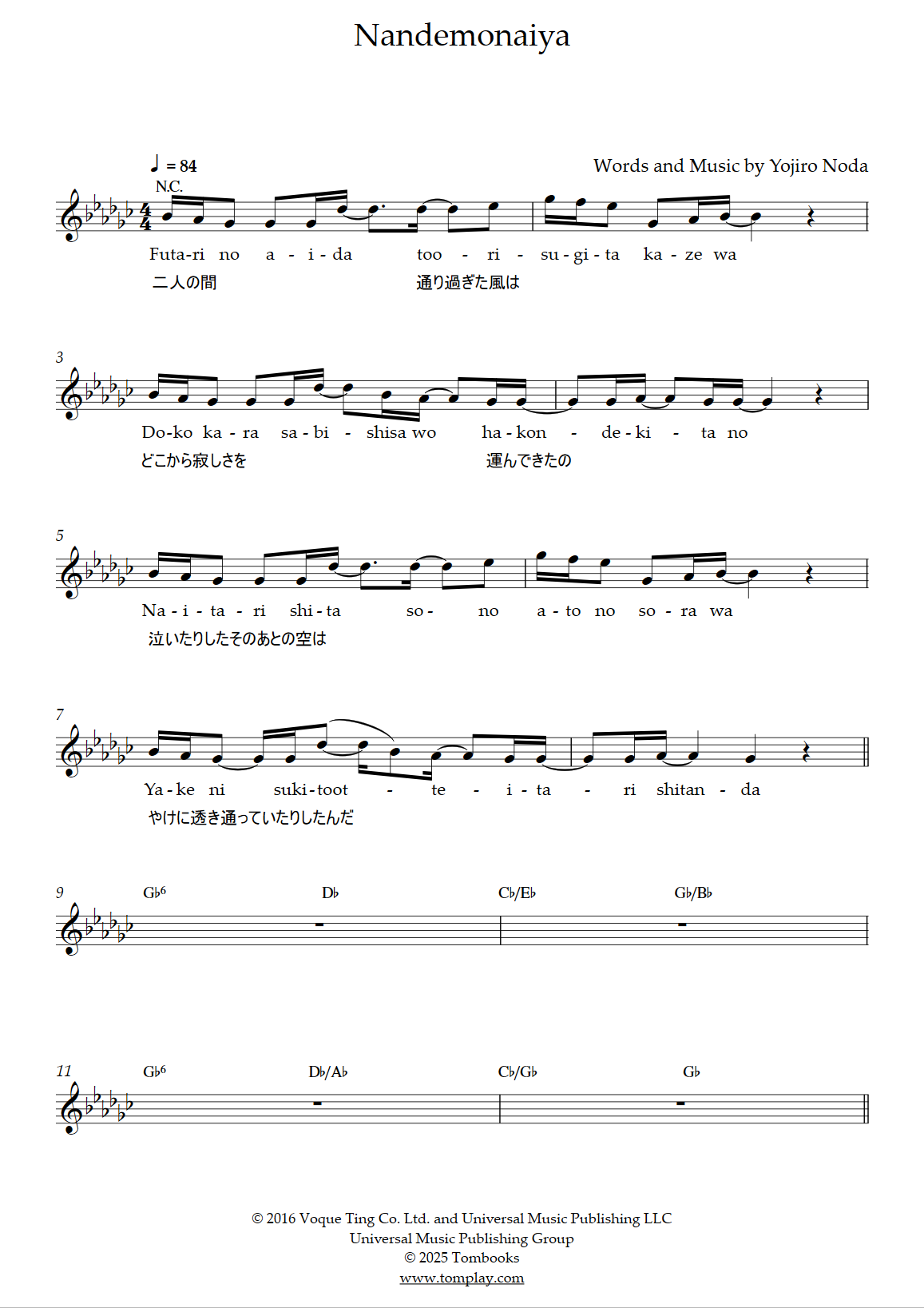 Téléchargez la partition Chant Nandemonaiya de Radwimps. Partition pour Avec accompagnemen…