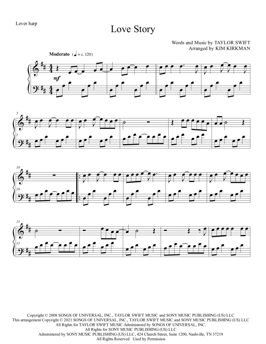 Lever Harp - Level 3 - Digital Download SKU: A0.1506364 By Taylor Swift. By Aaron Dessner and Taylor Swift. Arranged by Rachael Acheson. 21st Century,Contemporary,Folk,Pop,Singer/Songwriter. Score. 3 pages. TheHarpLibrarian #1081720. Published by TheHarpLibrarian (A0.1506364). This meditative and compact solo instrumental arrangement of Cardigan from Taylor Swift's album Folklore will evoke slow, rainy autumn days wherever you play it, even as people stop in their tracks to listen.It can be played on a harp as small as 26 strings, provided that your harp has levers and is tuned to E-flat. There are, however, thankfully NO lever changes OR page changes mid-piece, as the arrangement makes clever use of repeats and codas so that it can be contained on a convenient, two-page spread.The only potentially challenging aspect is the rhythm, as the complex and easily-recognizable melody occassionally brings out triplets that I've set against quarter notes. If you are comfortable with more complex rhythms, however, you could play this piece with a lower technical proficiency, maybe even somewhere in the range of late-beginner or early intermediate. Again, though, this will depend on the individual harpist and your own strengths.Please note that the preview cuts off after the first half-page of score. When you download your purchase, you will recieve a pdf that contains both the preview and the full score.