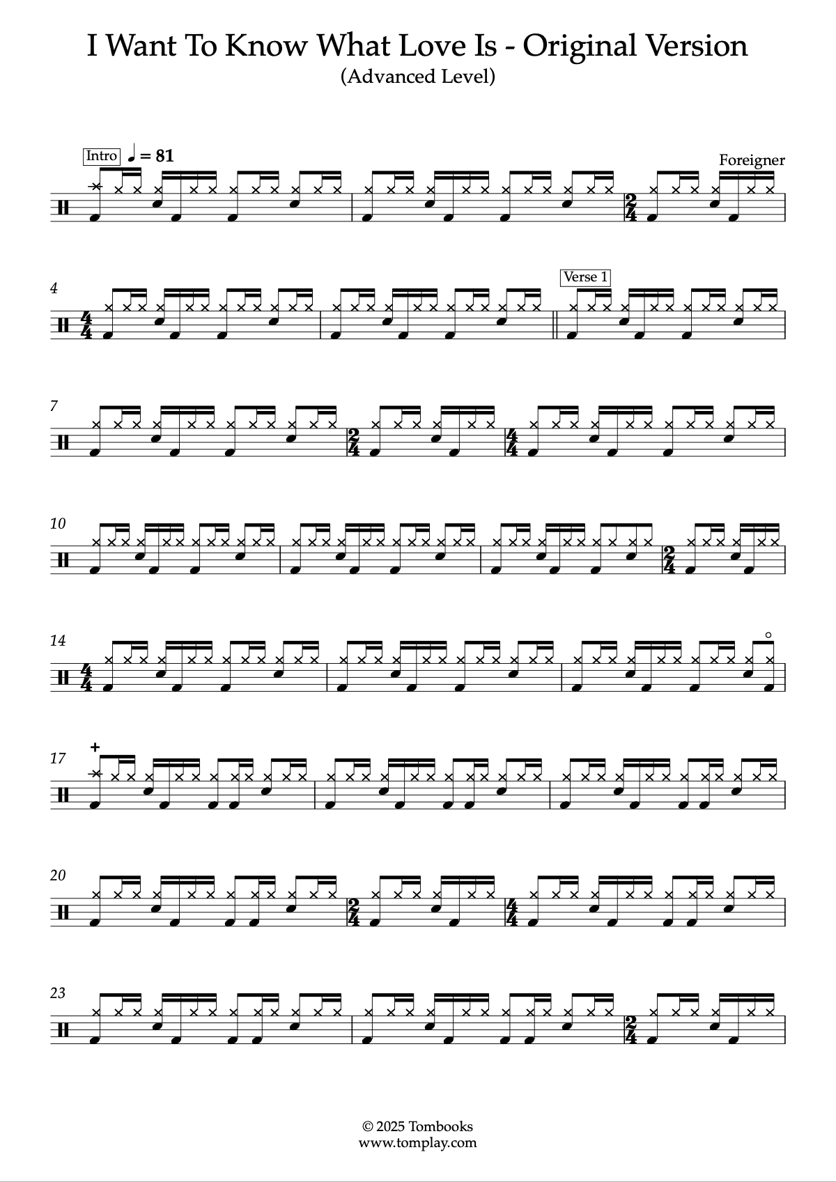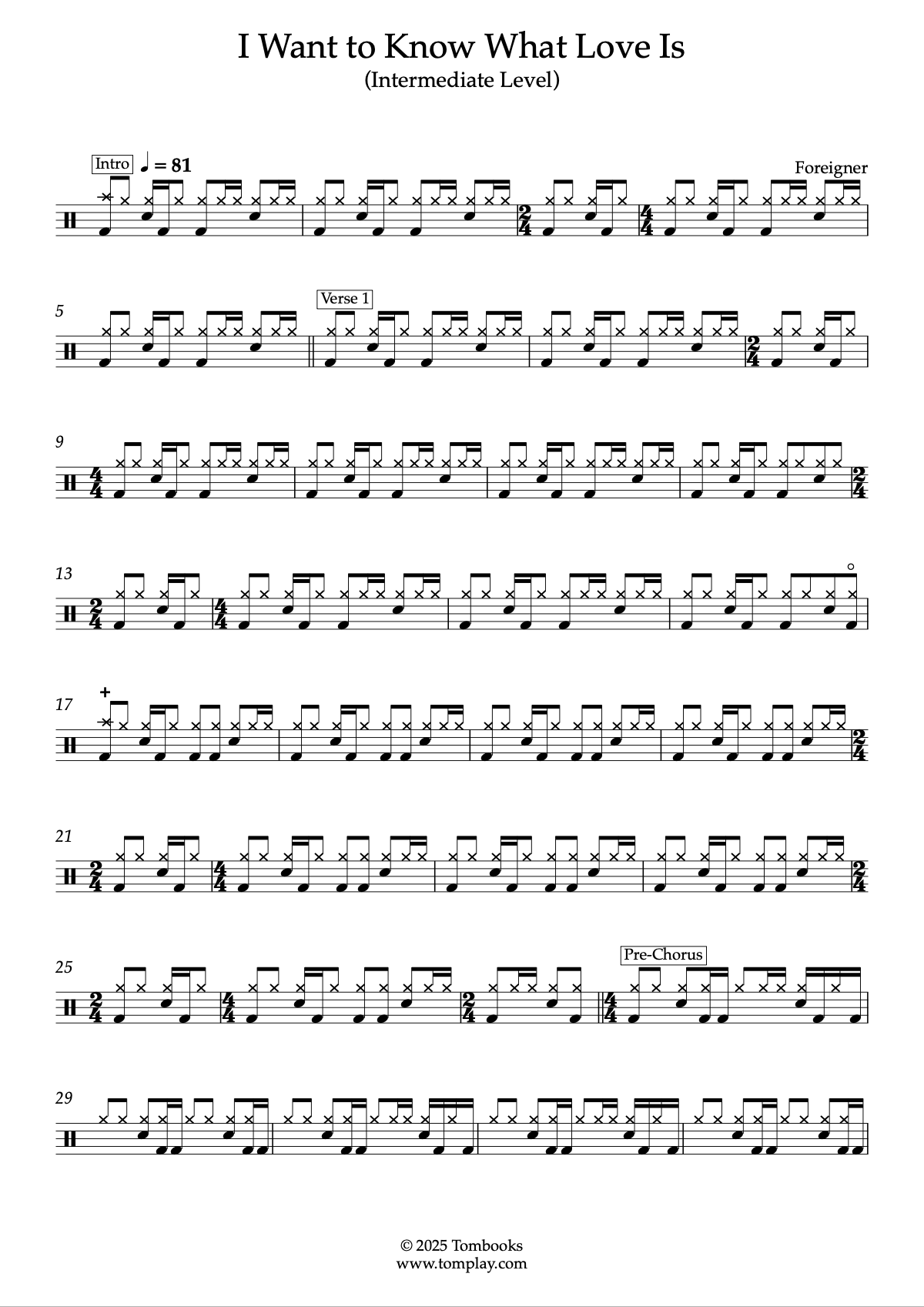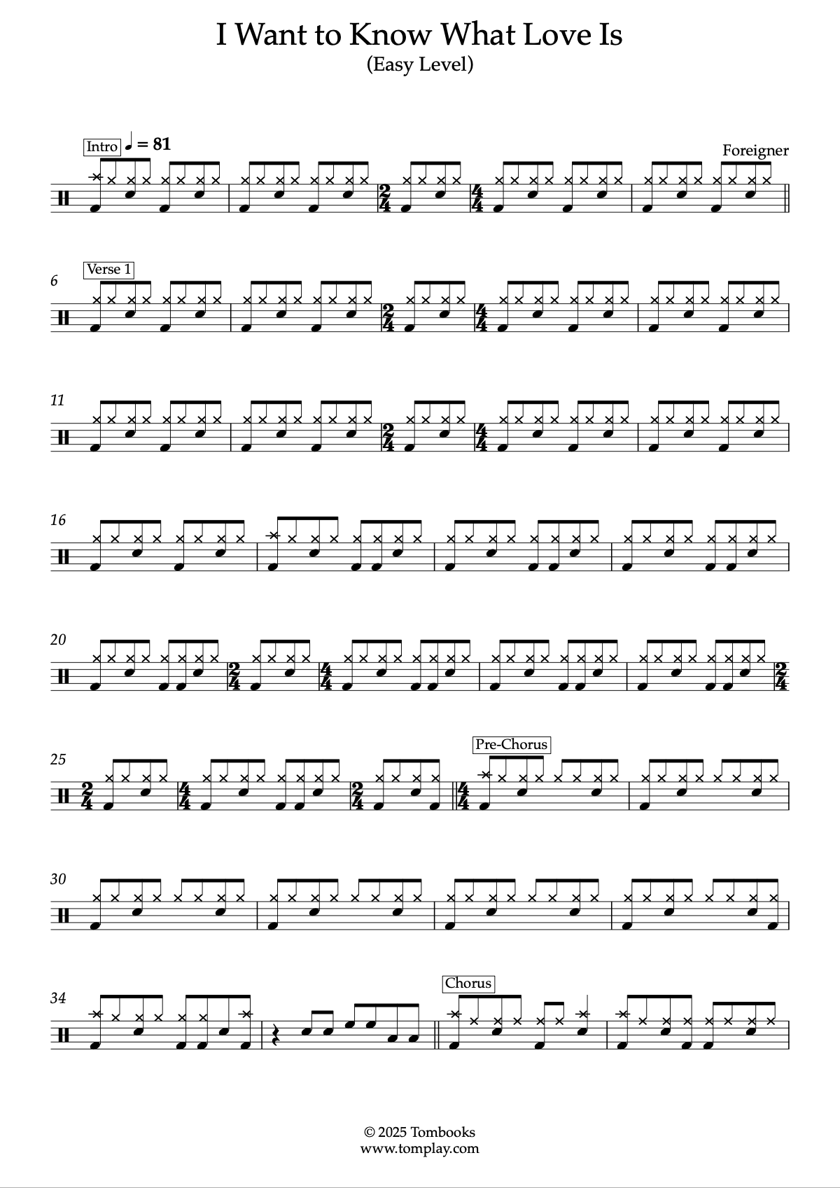 Téléchargez la partition Batterie I Want To Know What Love Is (niveau facile) de Foreigner…