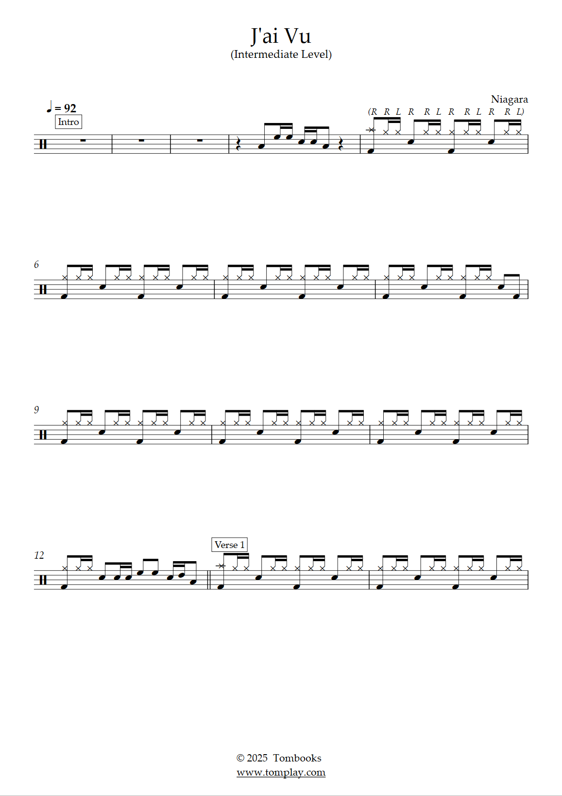 Téléchargez la partition Batterie J'ai vu - Version originale (niveau difficile) de Niagar…