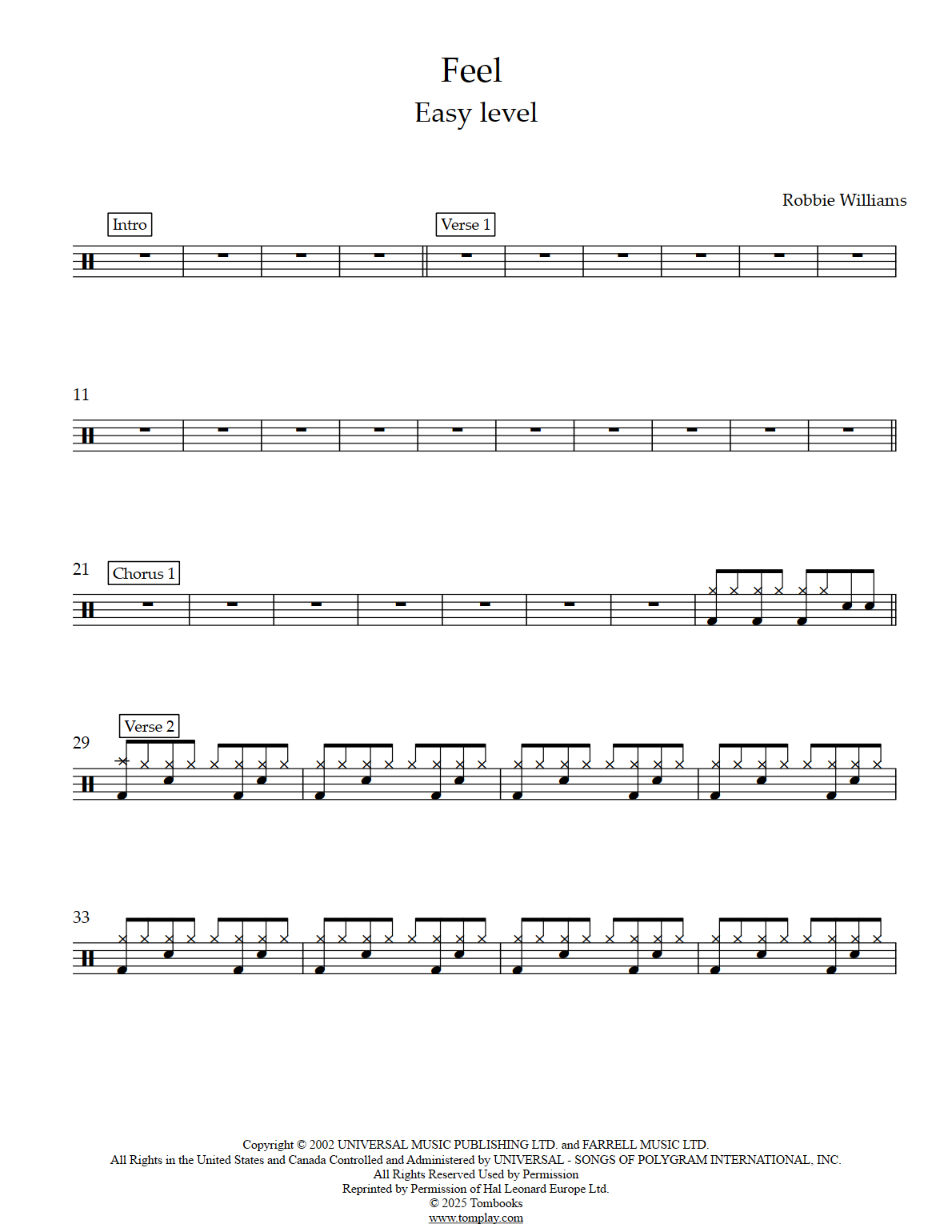 Téléchargez la partition Batterie Feel (niveau facile) de Robbie Williams. Partition avec …