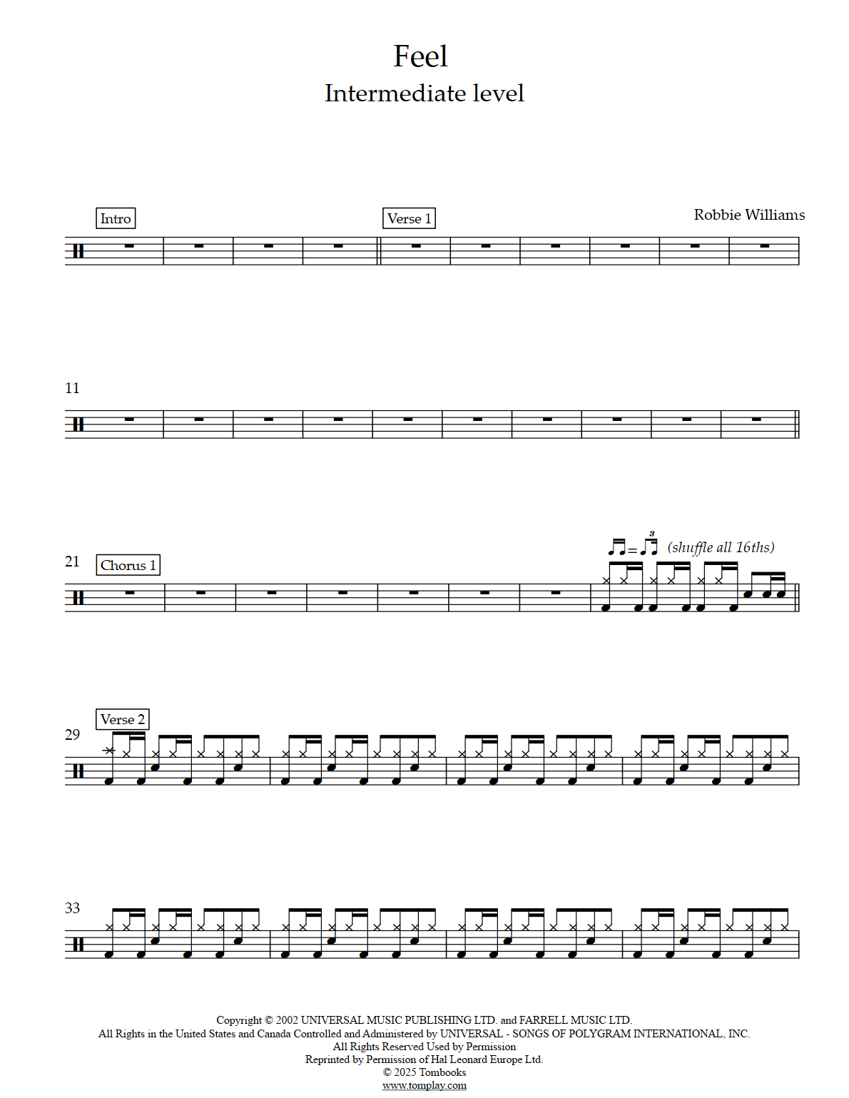 Téléchargez la partition Batterie Feel (niveau intermédiaire) de Robbie Williams. Partitio…