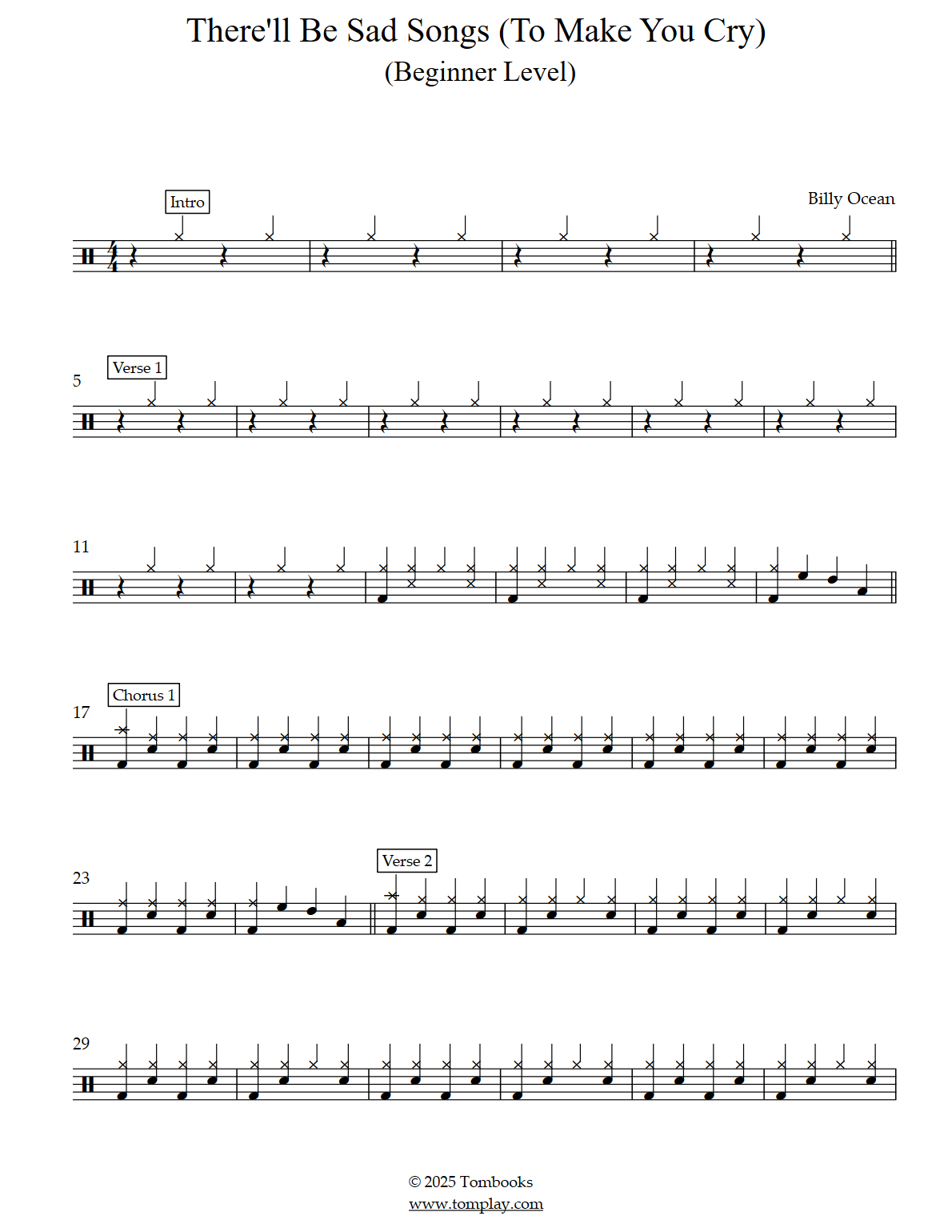 Téléchargez la partition Batterie There'll Be Sad Songs (To Make You Cry) (niveau débutant…
